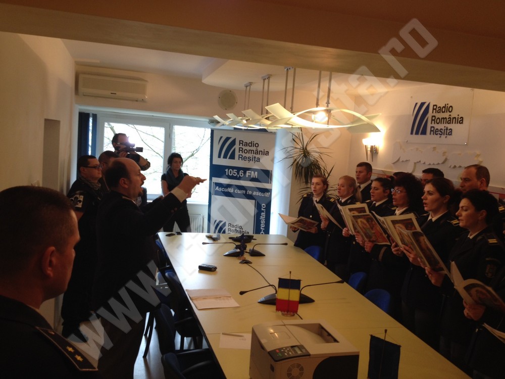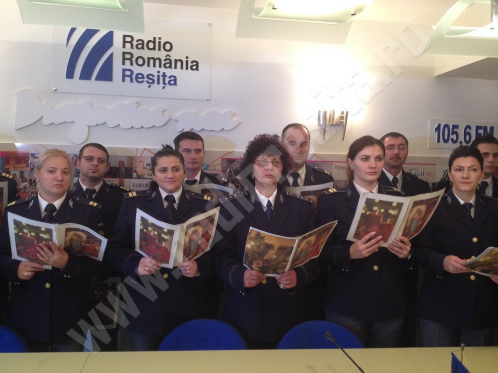 Poliţiştii de frontieră din Caraş-Severin au „descins” astăzi la mai multe instituţii publice din judeţ, printre care şi la Radio România Reşiţa. Oamenii legii, coordonaţi de şeful Serviciului Teritorial, comisar şef Florin Bulgariu au vizitat Inspectoratul Judeţean de Poliţie şi Prefectura Judeţului Caraş-Severin, având ca punct final studioul nostru de radio. Poliţiştii Sectorului Oraviţa au respectat tradiţia şi au adus cu ei colindele tradiţionale româneşti, dar şi din repertoriul internaţional. Prestaţia artistică a fost răsplătită cu cozonaci şi numeroase aplauze.