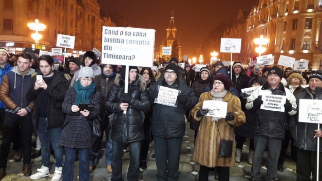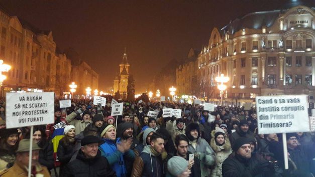 [FOTO] Protest la Timişoara. Mii de oameni cer renunţarea la graţiere