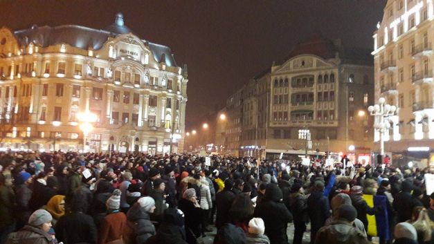 Conform estimărilor Jandarmeriei, numărul protestatarilor se situează în jurul a 3.000 de persoane. Mitingul din Piaţa Victoriei se desfăşoară sub sloganul “Spune NU aministiei, spune DA democraţiei”. Oamenii poartă pancarte pe care stă scris “La închisoare, nu la guvernare” sau “Ei graţiaţi, noi furaţi”.