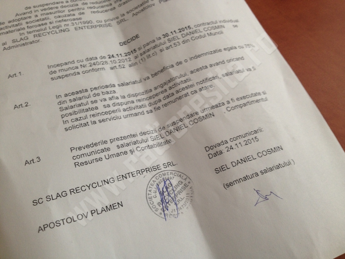 Eugenia Mihăescu – şeful ITM Caraş-Severin, spune că firma în cauză este în insolvenţă şi a depus la sediul inspectoratului un proiect de concediere colectivă, iar salariaţii o sesizare. Inspectorii de muncă urmează acum să declanşeze o acţiune de control la nivelul societăţii şi să analizeze exact situaţia şi motivele care au determinat concedierea. „Din informaţiile pe care le deţin, în privinţa salariilor restante, societatea este în pragul declanşării de insolvenţă, iar drepturile salariale vor fi înscrise la masa credală. Acest lucru înseamnă să-şi recupereze banii în momentul în care vor fi vândute activele firmei. Dar mai există posibilitatea ca administratorul judiciar sau lichidatorul să acceseze un fond de garantare, gestionat de Agenţia judeţeană de ocupare şi formare profesională”, a subliniat şeful ITM Caraş-Severin.
