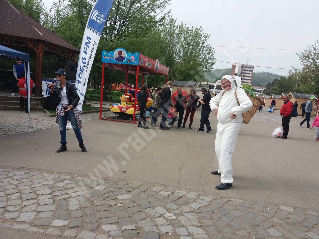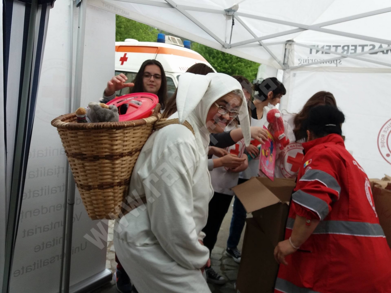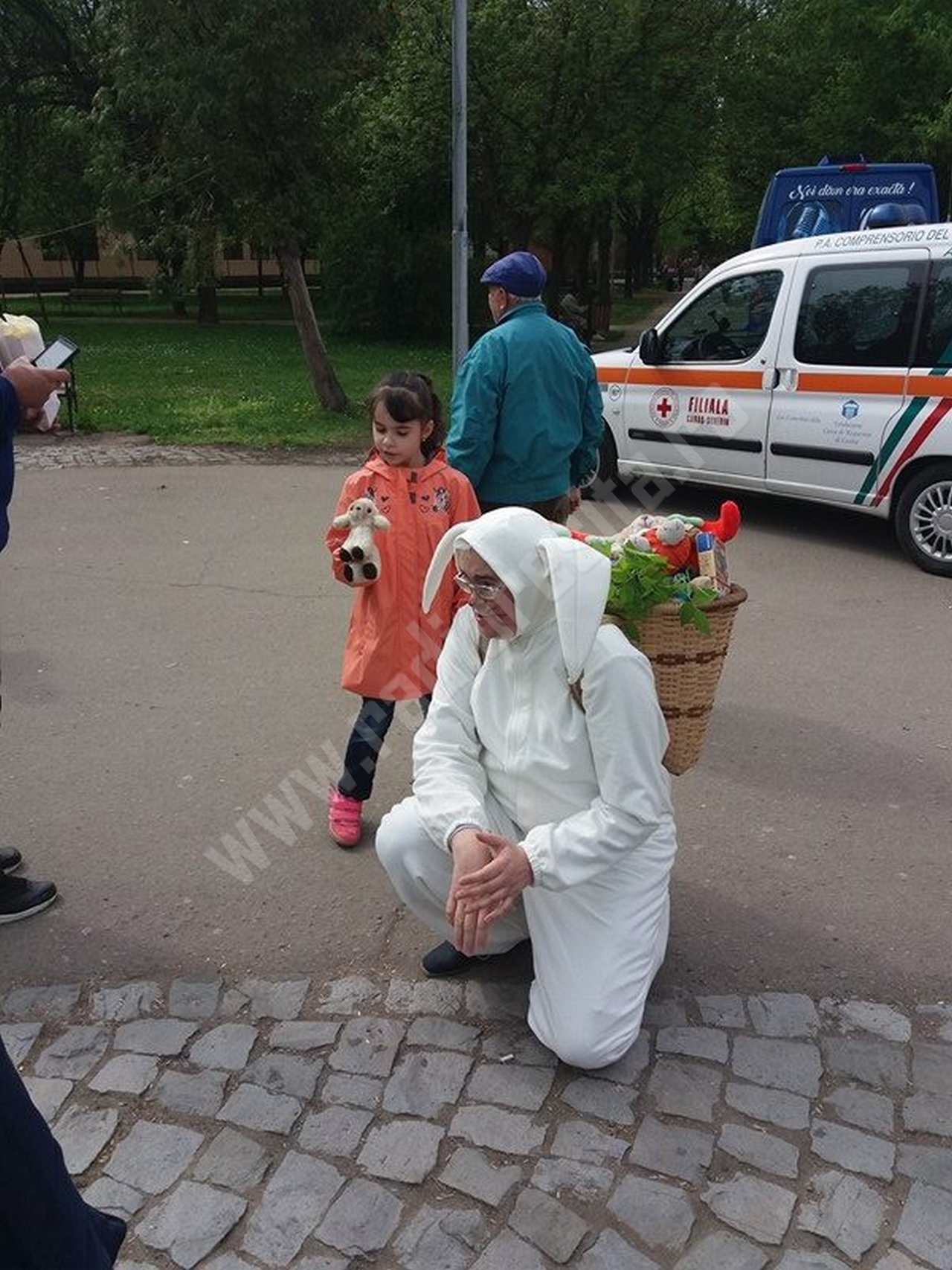 Partenerii noştri, voluntarii de la Crucea Roşie, au fost şi ei în mijlocul cetăţenilor şi le-au împărţit, alături de iepuraş, daruri copiilor. ,,Am împărţit jucării şi anii trecuţi de Paşte. Astăzi vom împărţi copiilor din Parcul Tricolorului, jucării şi dulciuri, alături de voluntarii de la Radio Reşiţa, pentru că noi aşa îi considerăm, am colaborat şi vom mai colabora. Ne sunt alături ori de câte ori îi rugăm„.