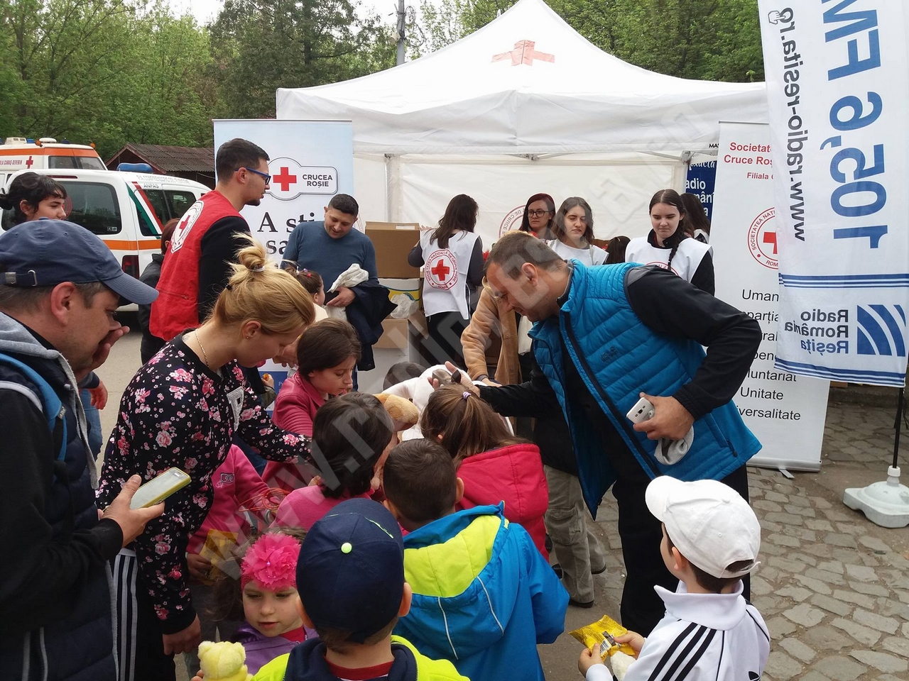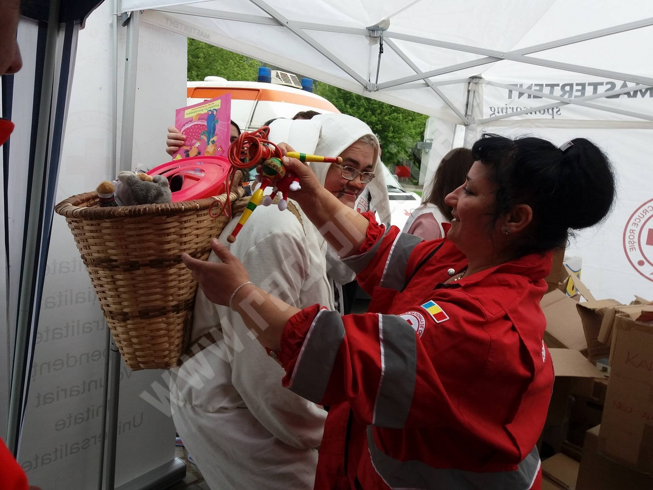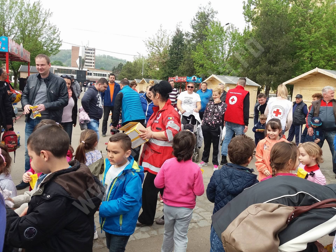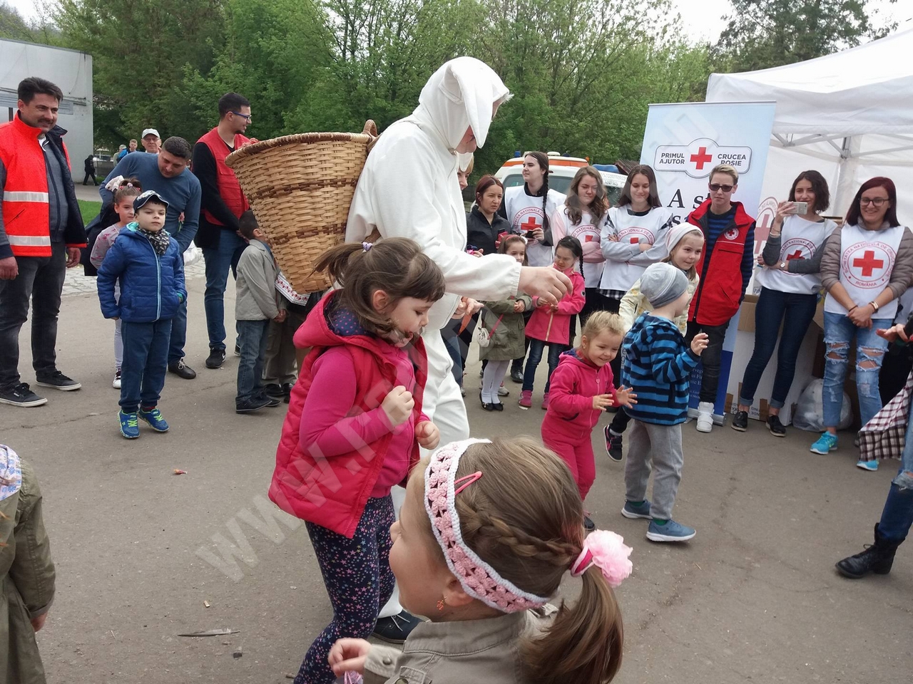 Partenerii noştri, voluntarii de la Crucea Roşie, au fost şi ei în mijlocul cetăţenilor şi le-au împărţit, alături de iepuraş, daruri copiilor. ,,Am împărţit jucării şi anii trecuţi de Paşte. Astăzi vom împărţi copiilor din Parcul Tricolorului, jucării şi dulciuri, alături de voluntarii de la Radio Reşiţa, pentru că noi aşa îi considerăm, am colaborat şi vom mai colabora. Ne sunt alături ori de câte ori îi rugăm„.