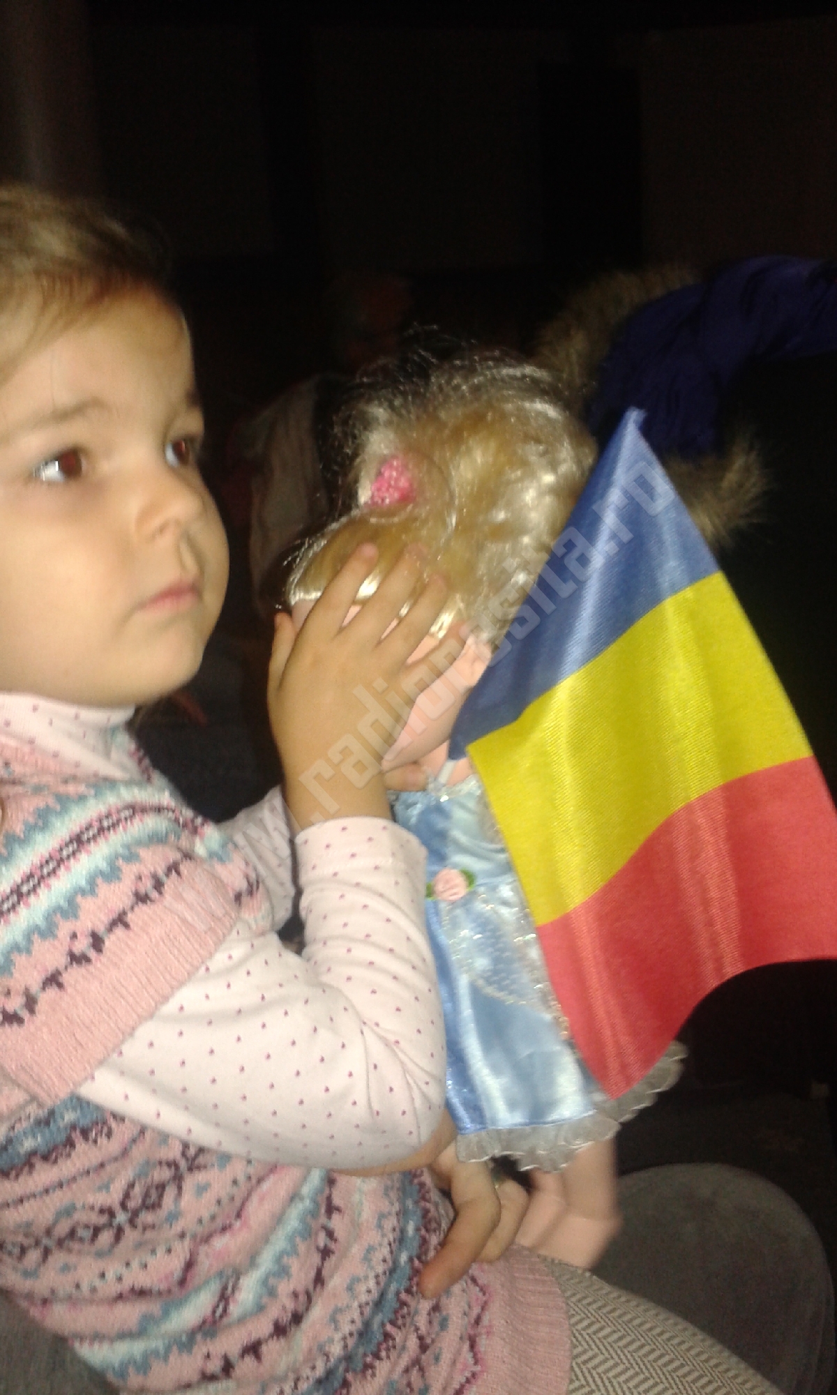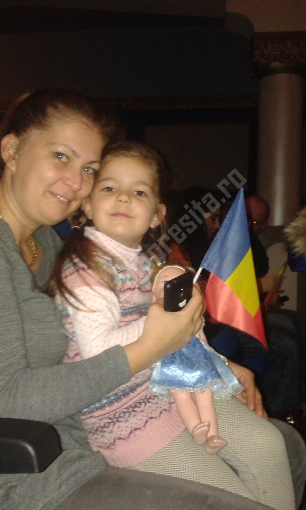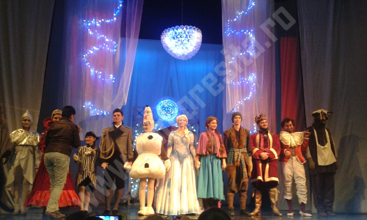 Radio România Reşiţa a dăruit şi astăzi steguleţe. De această dată, zeci de copii, părinţi şi bunici au avut surpriza ca înainte de a intra în sala de spectacole a Teatrului de Vest din Reşiţa să fie întâmpinaţi de echipa Radio Reşiţa, care le-a înmânat fiecăruia steguleţe, şi aceasta în preajma Zilei Naţionale a României. Astăzi a avut loc premiera piesei FROZEN. Sosite tocmai din tărâmurile de gheaţă, Elsa şi Ana au fost întâmpinate cu aplauze şi cu tricolorul, fluturat de cei aproape 200 de copii. Sala de spectacole a Teatrului de Vest a fost arhiplină, piesa jucându-se cu casa închisă. Copiii, dar şi adulţii au savurat povestea din ţinuturile nordice şi au aplaudat îndelung prestaţia tinerilor actori. Cei care nu au mai găsit bilete, pot viziona spectacolul în data de 13 decembrie. Mâine actorii vor bucura şi copiii din Deva, acolo unde vor ajunge Elsa şi Ana, alături de prietenii lor. Fluturând tricolorul, copiii, părinţii şi bunicii au avut surpriza să observe, la ieşirea de la spectacol, că Elsa a adus fulgi de nea şi la Reşiţa.