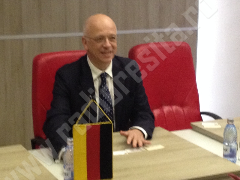 După ce joi şi vineri, diplomatul german a purtat discuţii la Timişoara cu reprezentanţii forului judeţean şi local şi cu delegaţii asociaţiilor şi cluburilor economice din Arad şi Timiş, sâmbătă oficialul se află la Reşiţa unde de dimineaţă a avut întrevederi cu oficialităţile locale şi judeţene, prefectul Florenţa Albu, vicepreşedintele CJ Caraş-Severin, Silviu Hurduzeu şi primarul urbei, Ioan Popa, dar şi cu conducerea Universităţii „Eftimie Murgu” din urbe, reprezentată prin dr. ing. Christian Paul Chioncel şi în prezenţa dr. ing. Doina Frunzăverde.