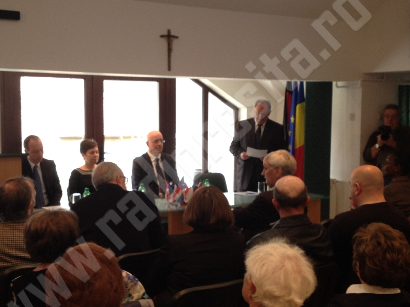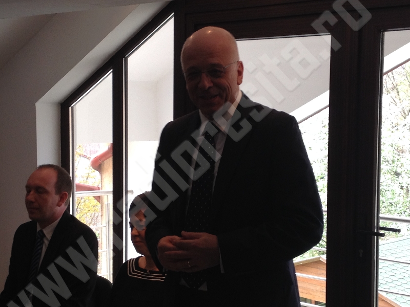 La orele amiezii, diplomatul german a fost prezent la Centrul cultural german Alexander Tietz din municipiul de pe Bârzava unde s-au desfăşurat lucrările deschise care marchează cei 60 de ani de la înfiinţarea Comunităţii Economice Europene la Roma, la data de 25 martie 1957.
