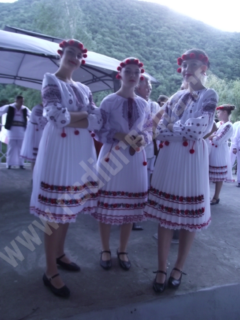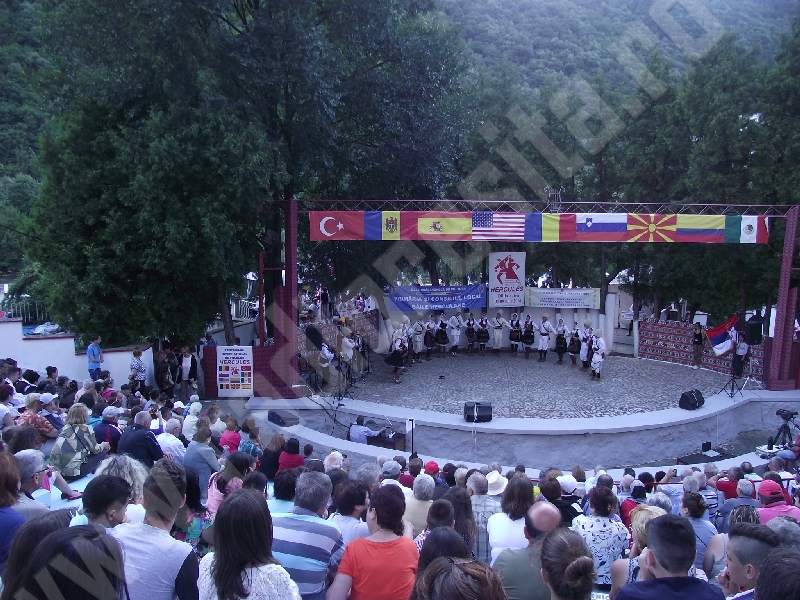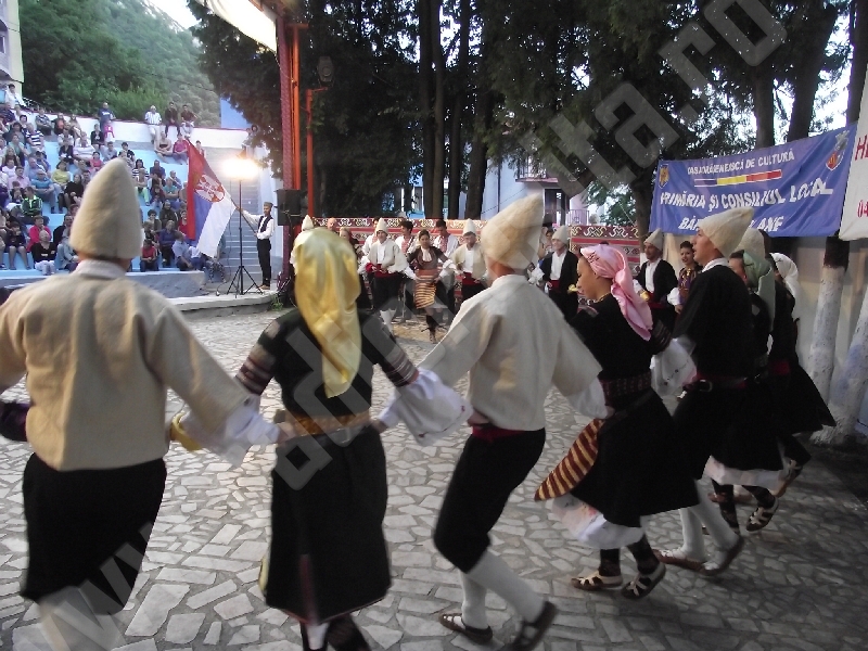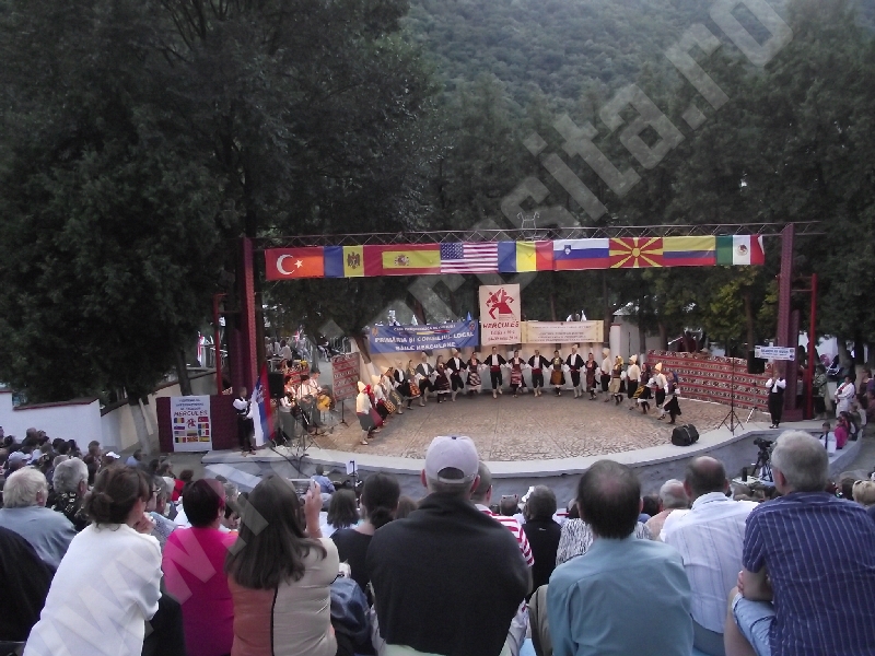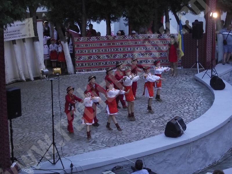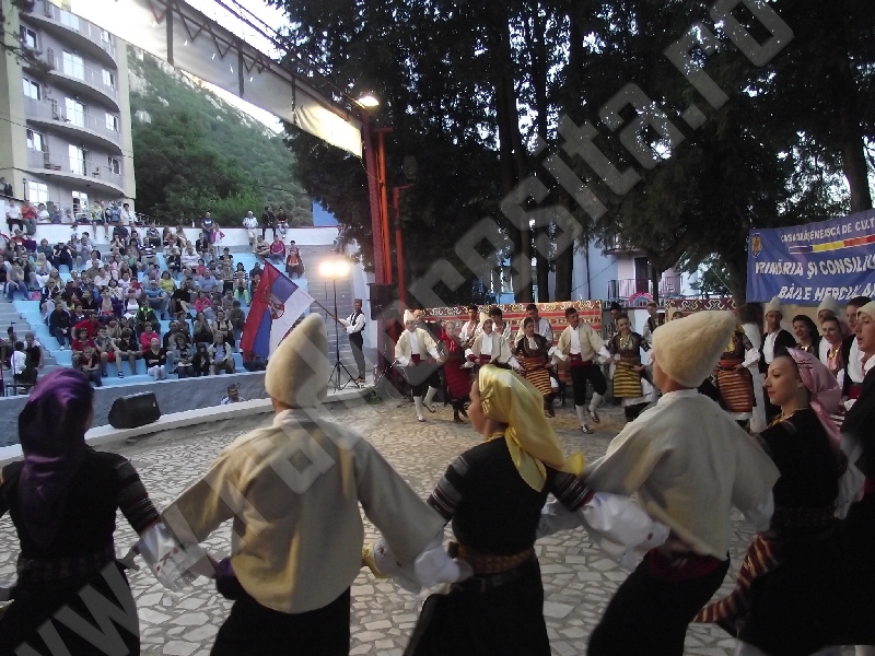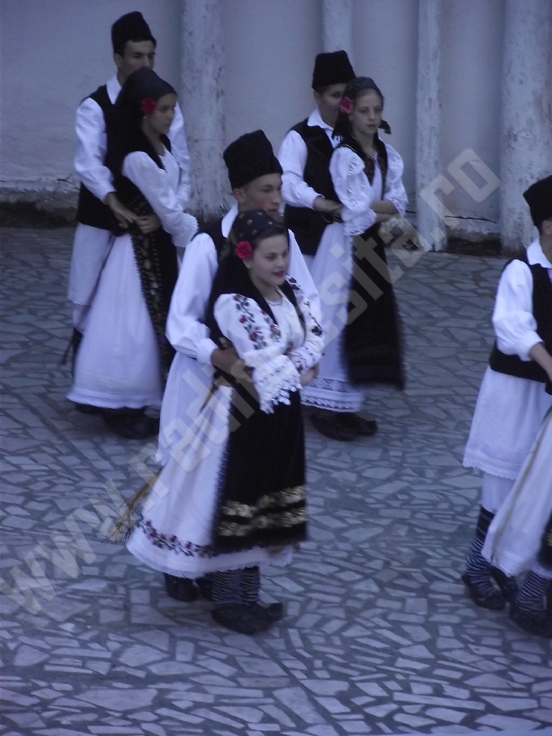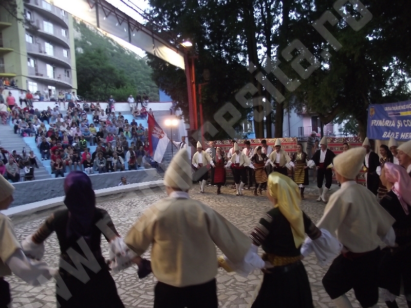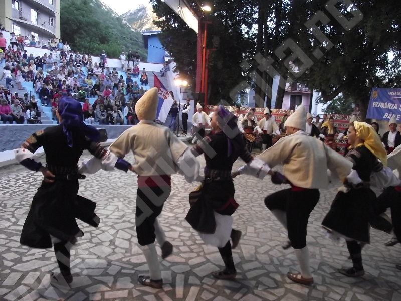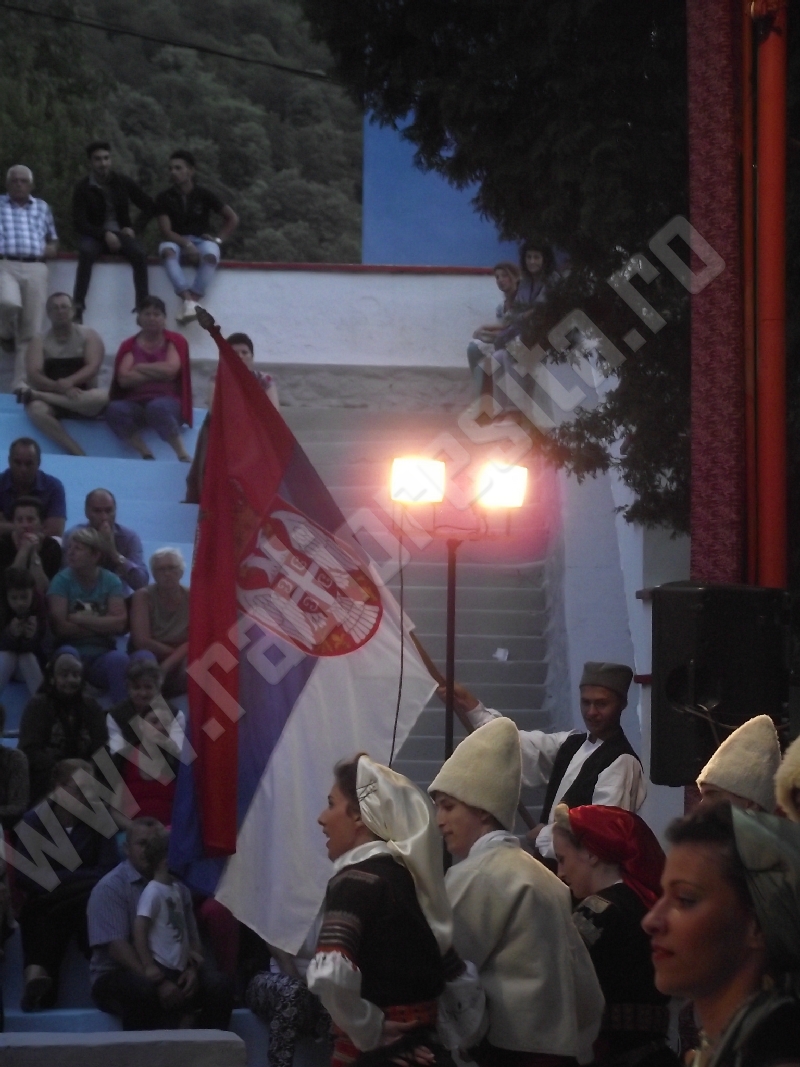 Spectacolul de aeară a fost deschis de ansamblurile reunite TEREGOVANA şi TEREGOVIŢA din comuna Teregova, care au cules aplauzele publicului pentru dansurile de pe Valea Timişului. A început apoi recitalul de folclor al vecinilor noştri din Serbia, primul urcând pe scenă Ansamblul KUD MAIDANPEK, cu o suită de dansuri din Valea Timocului, unde trăieşte şi o importantă comunitate românească, ale căror cântece şi dansuri sunt similare celor din judeţul Mehedinţi, peste Dunăre!