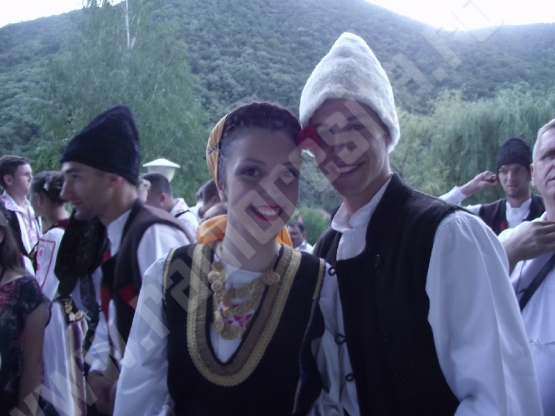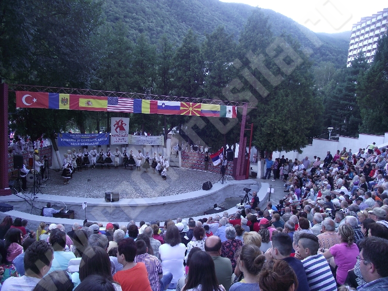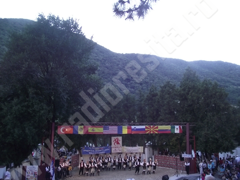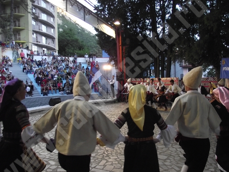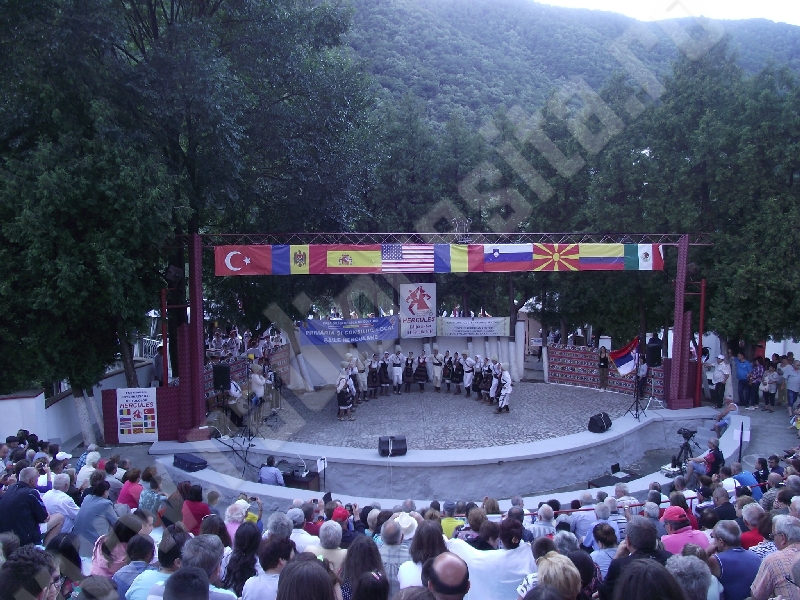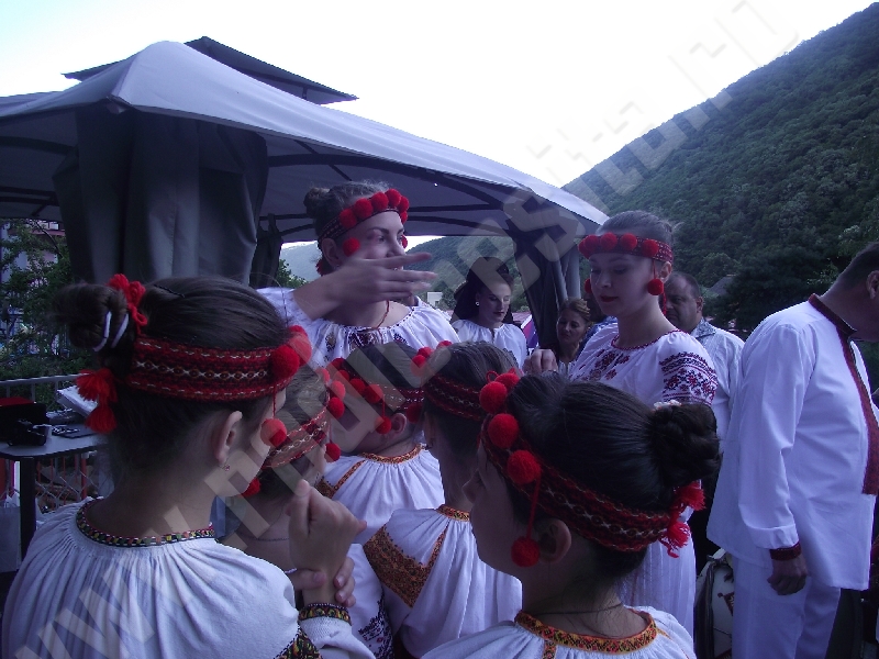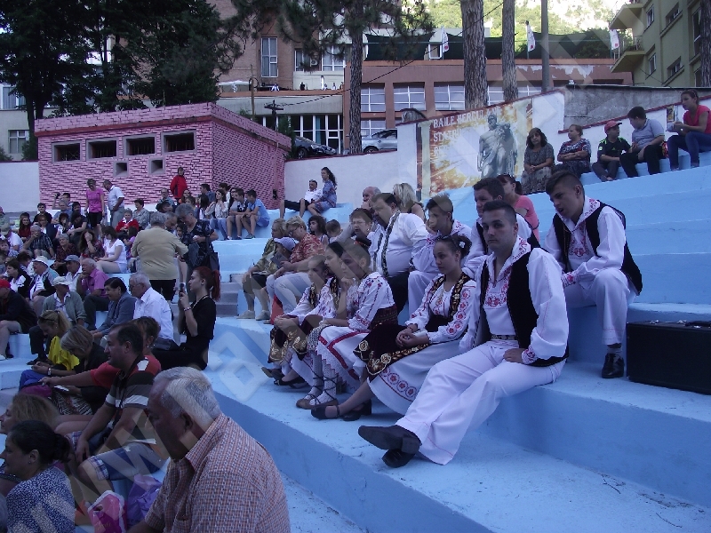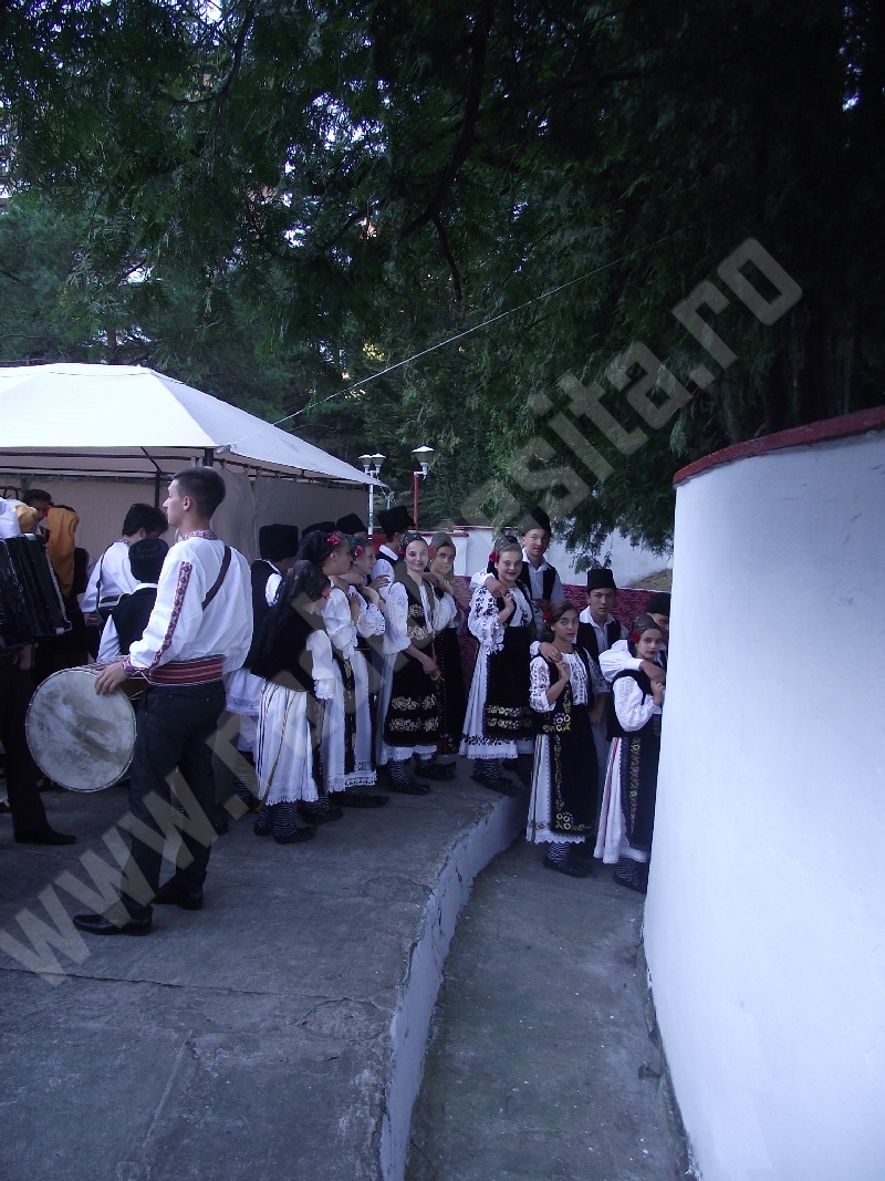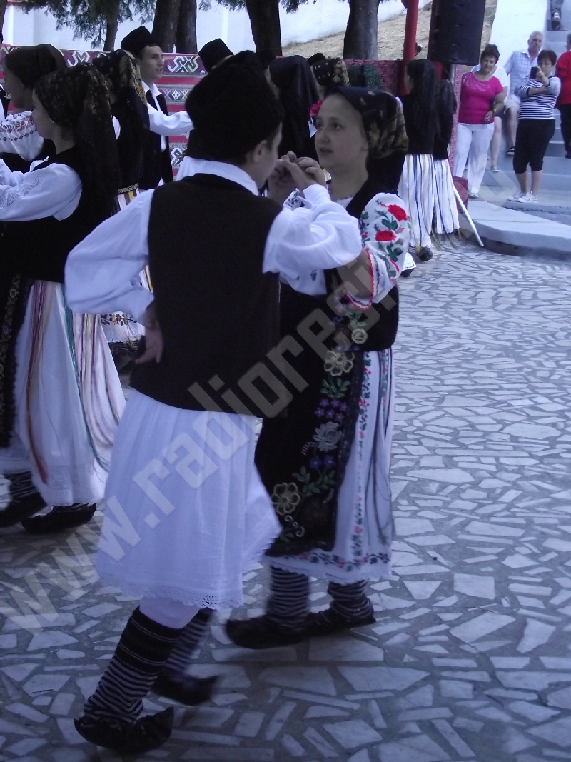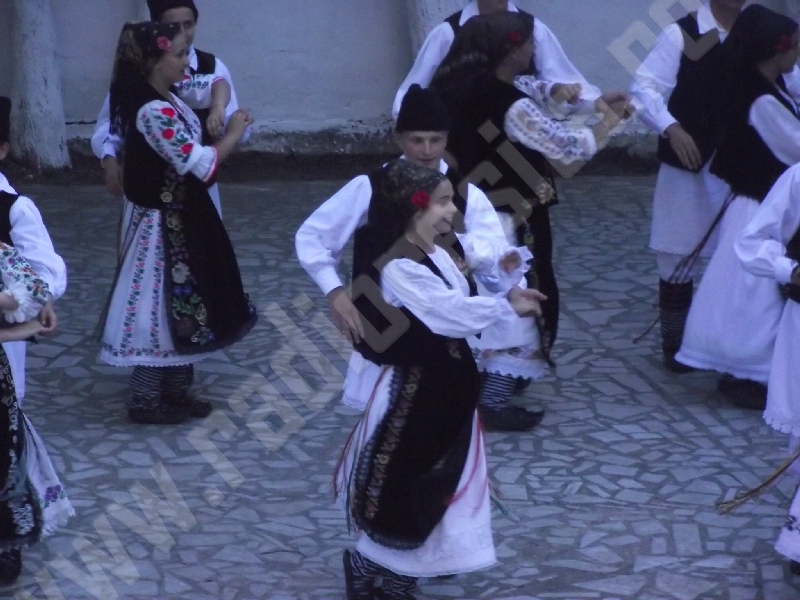 Spectacolul de aeară a fost deschis de ansamblurile reunite TEREGOVANA şi TEREGOVIŢA din comuna Teregova, care au cules aplauzele publicului pentru dansurile de pe Valea Timişului. A început apoi recitalul de folclor al vecinilor noştri din Serbia, primul urcând pe scenă Ansamblul KUD MAIDANPEK, cu o suită de dansuri din Valea Timocului, unde trăieşte şi o importantă comunitate românească, ale căror cântece şi dansuri sunt similare celor din judeţul Mehedinţi, peste Dunăre!