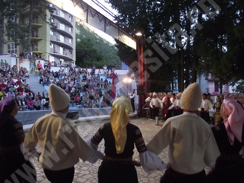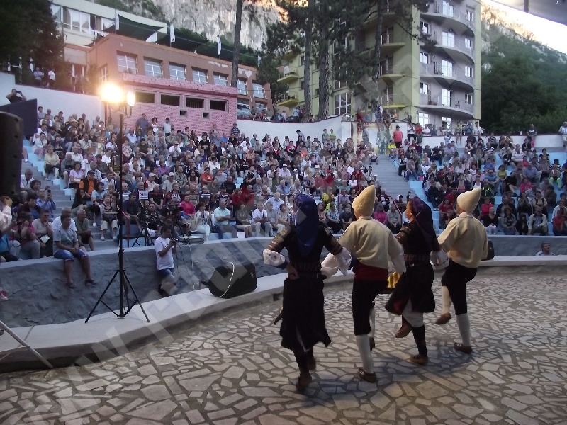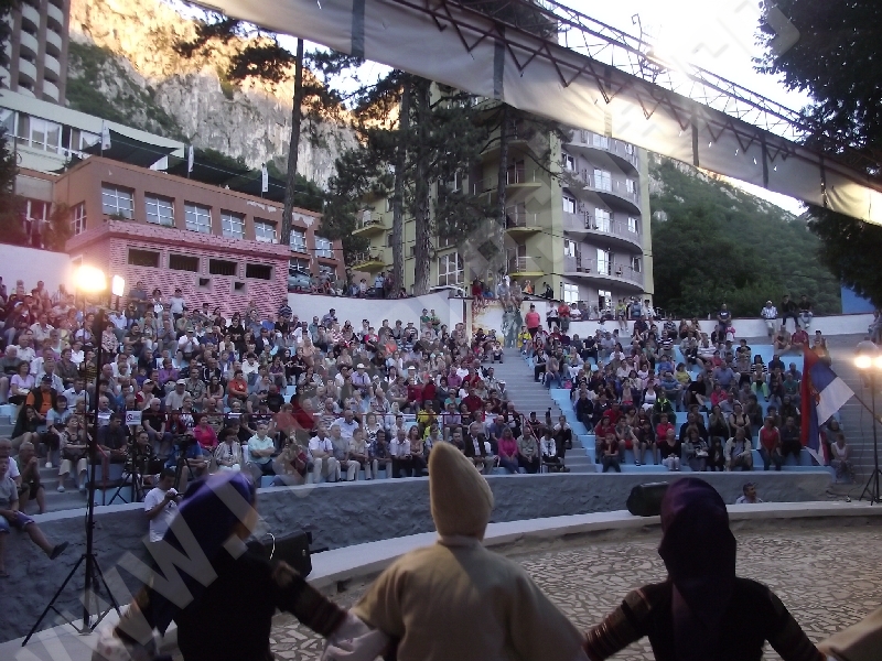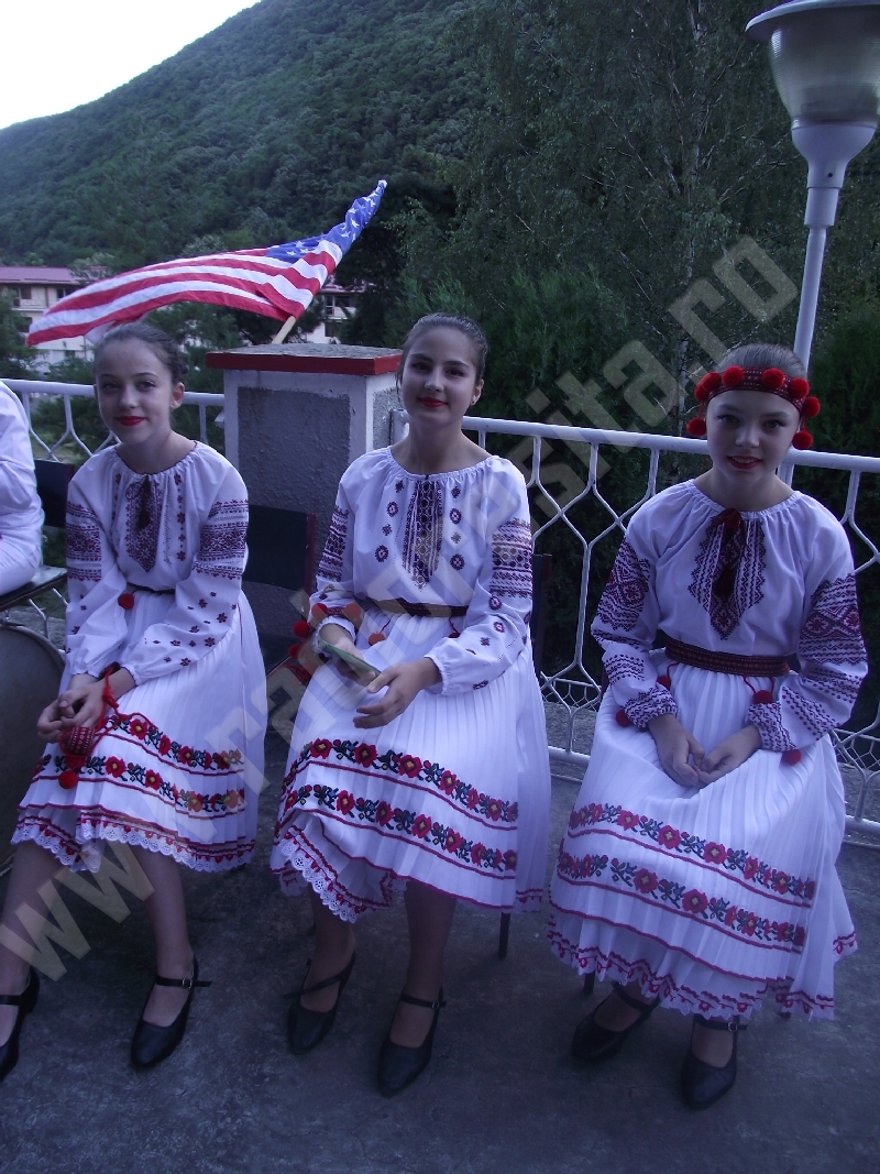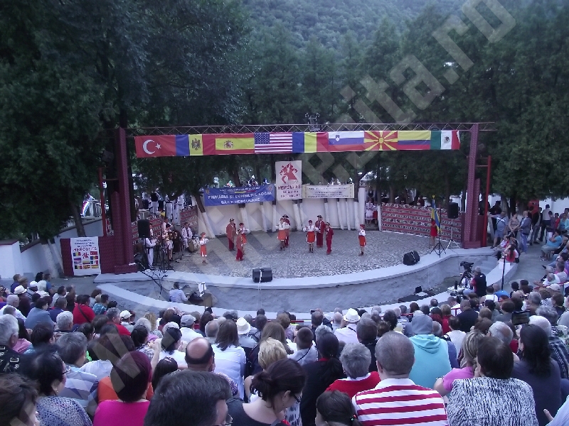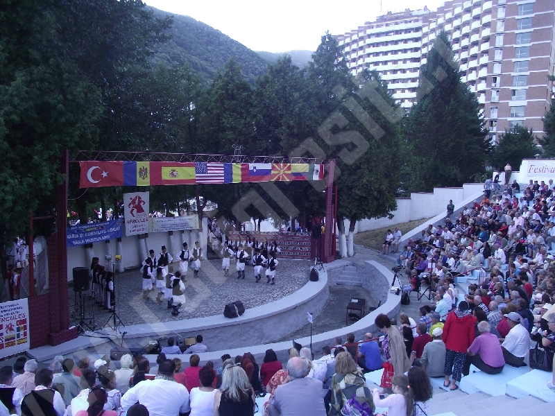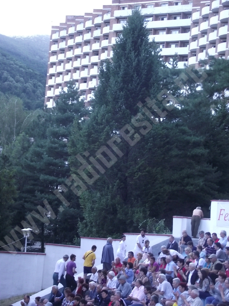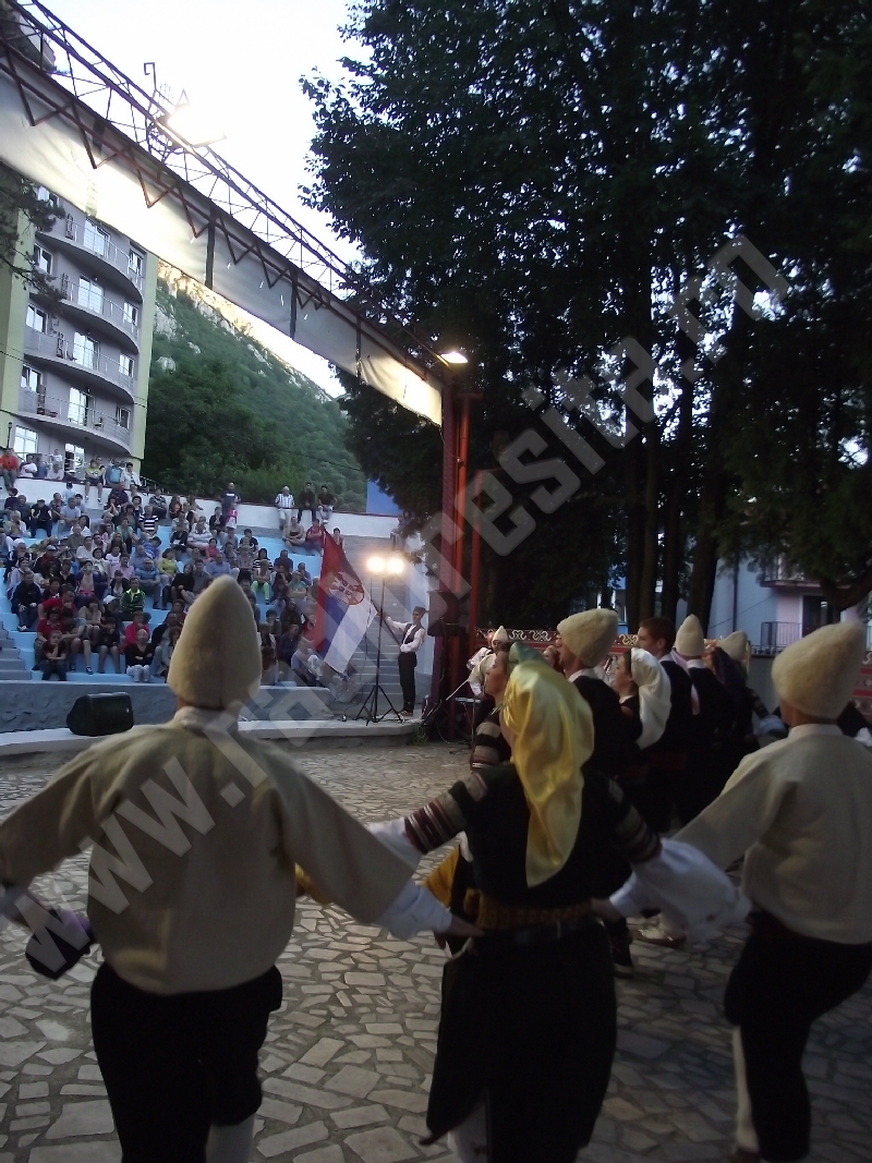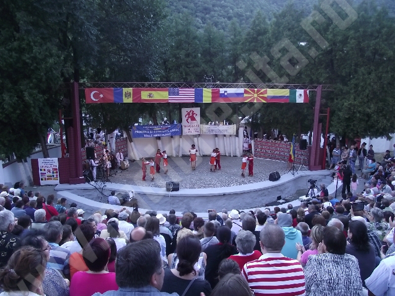 Spectacolul de aeară a fost deschis de ansamblurile reunite TEREGOVANA şi TEREGOVIŢA din comuna Teregova, care au cules aplauzele publicului pentru dansurile de pe Valea Timişului. A început apoi recitalul de folclor al vecinilor noştri din Serbia, primul urcând pe scenă Ansamblul KUD MAIDANPEK, cu o suită de dansuri din Valea Timocului, unde trăieşte şi o importantă comunitate românească, ale căror cântece şi dansuri sunt similare celor din judeţul Mehedinţi, peste Dunăre!