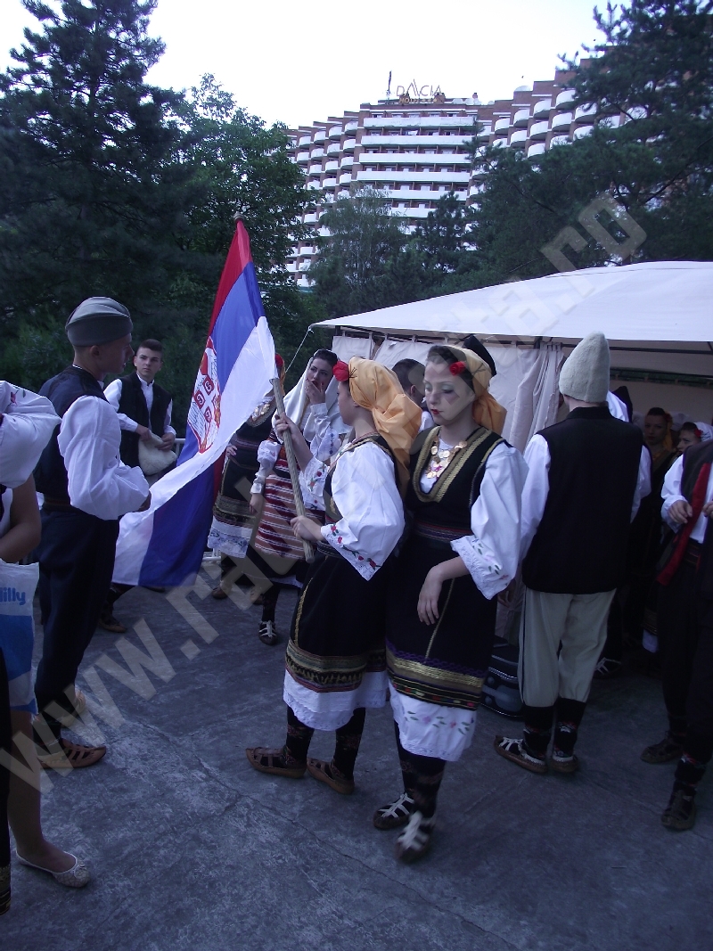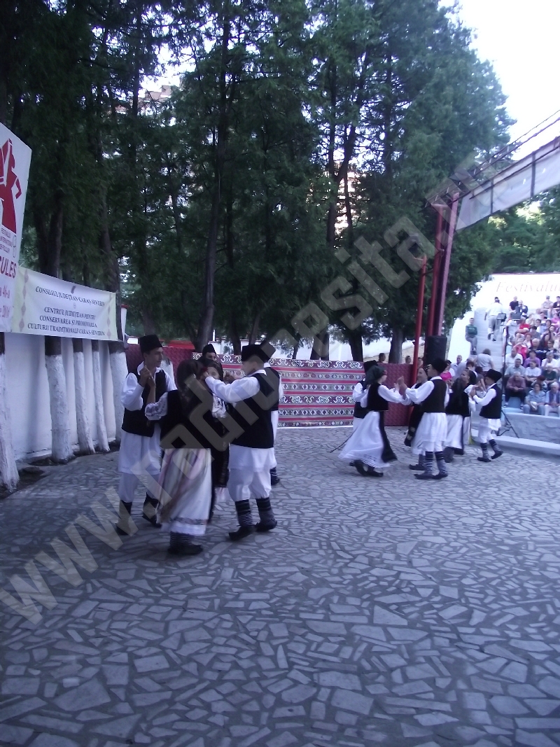 Publicul spectator – care a făcut ca şi în această seară locurile să fie prea puţine în gradenele Grădinii de Vară – a urmărit în continuare folclorul ucrainean prezentat de copiii şi tinerii din Ansamblul GORGANE (Lvov), programul acestora fiind foarte apreciat de spectatori, care i-au susţinut prin aplauze mai ales pe micii dansatori, dar care s-au dovedit a fi… la înălţime prin dansurile etalate, de provenienţă din Zacarpatia! Folclorul sârbesc a fost prezentat, apoi, de Ansamblul KUD BRANISLAV NUSICI din Vladicin-Hut, dansatorii sârbi dovedind că sunt adevăraţi profesionişti în ceea ce facc, iar efortul lor a primit aplauzele binemeritate ale publicului! Seara s-a încheiat cu suita de cântece şi dansuri din Valea Caraşului susţinută de Ansamblul HORA CARAŞULUI din Oraviţa, care la fiecare ediţie a festivalului la care a participat a demonstrat farmecul dansului, dar şi al cântecului din această parte a Banatului.