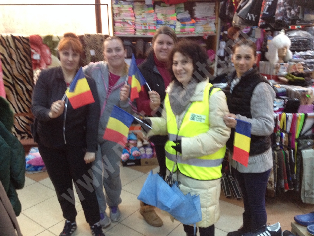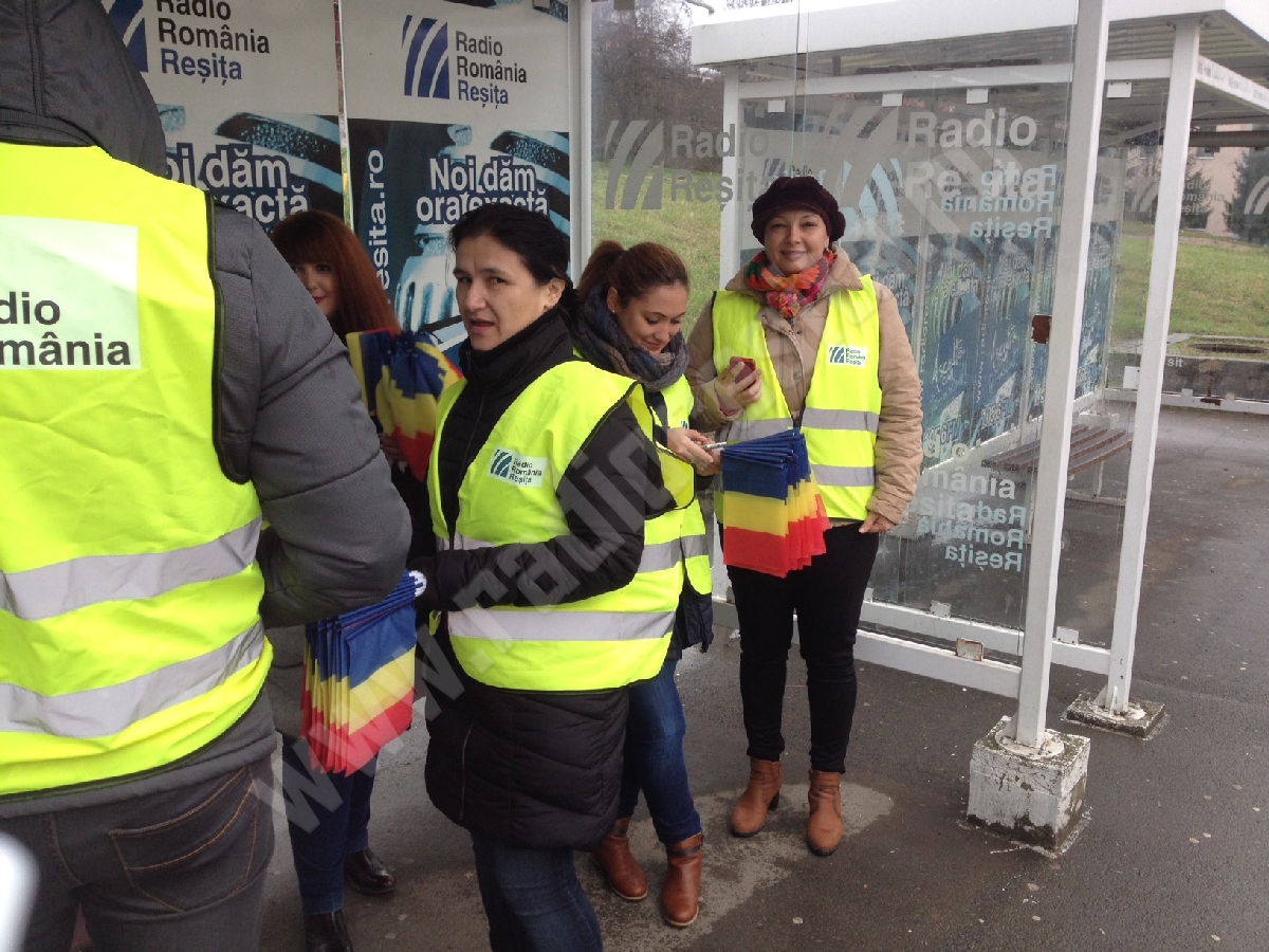 Reporterii s-au mai aflat astăzi, în centrul Reșiței, unde au împărțit alte sute de stegulețe, fluturate cu entuziasm de cei sosiți pentru a sărbători Ziua Națională, în ciuda timpului nefavorabil. Apoi, următoarea oprire – cartierul Lunca Bârzavei, unde în Parcul Tricolorului am dăruit ”tricolorul” altor cetățeni. În magazine, dar și la Spitalul de Urgență din Reșița, unde cu acest simbol am încercat să aducem un zâmbet și pe chipul celor aflați în suferință.