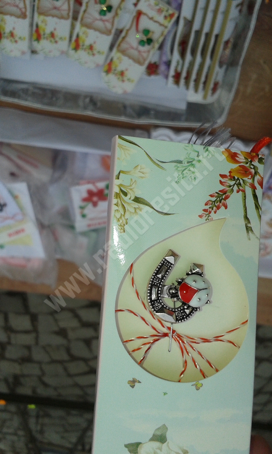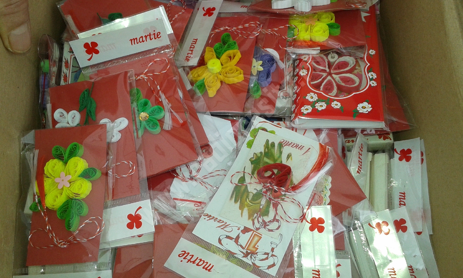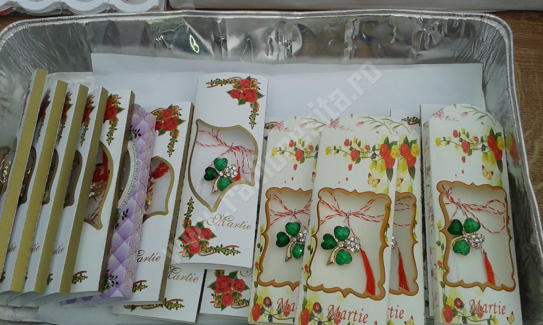 De la cele clasice, cu: flori, trifoi,coșari etc. vizitatorii pot achiziționa, mărțișoare confecționate din scoici, lut polimeric, hârtie sau unele cu imagini cu diferite personaje Disney,precum și alte obiecte:brățări, cordeluțe etc.Prețurile oscilează de la 3 la 15 lei, oferta fiind variată.