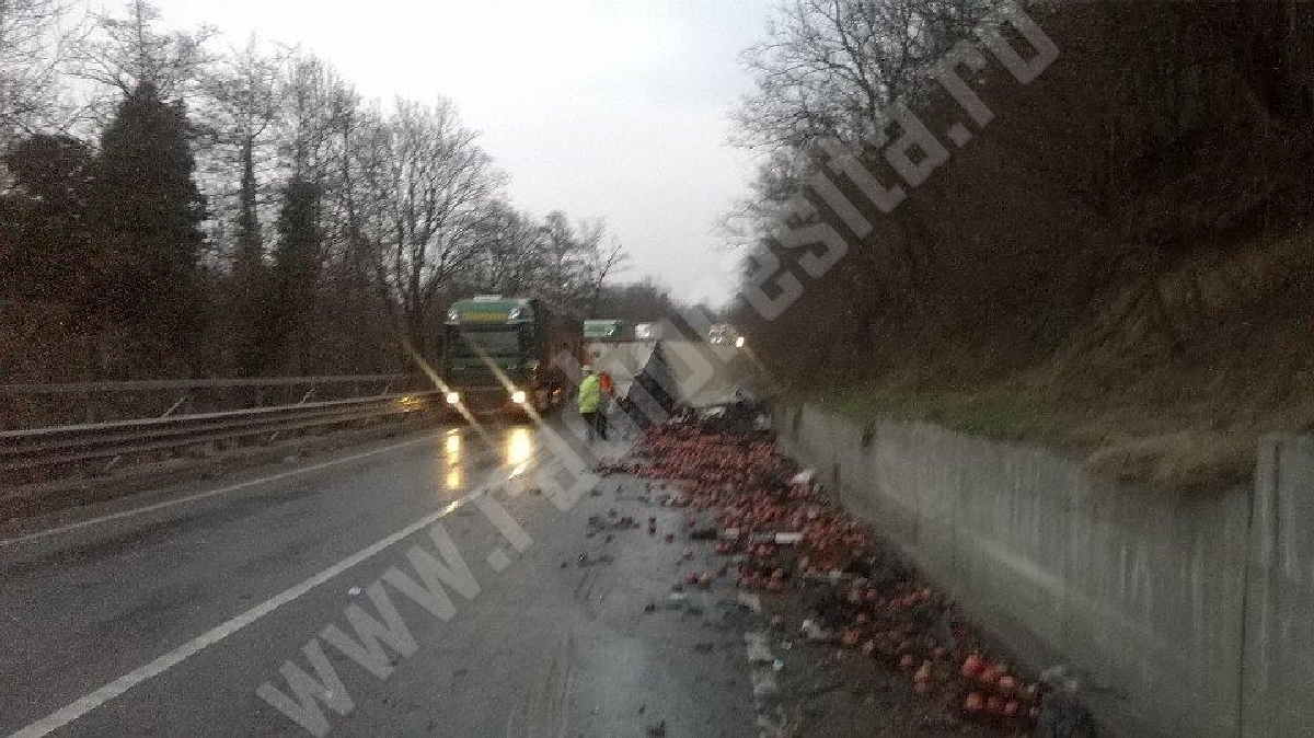 Sâmbătă cu ghinion pentru un șofer de TIR, încărcat cu fructe. Din cauza vitezei, probabil, acesta s-a răsturnat pe DN6, între localitățile Sadova Veche și Armeniș.