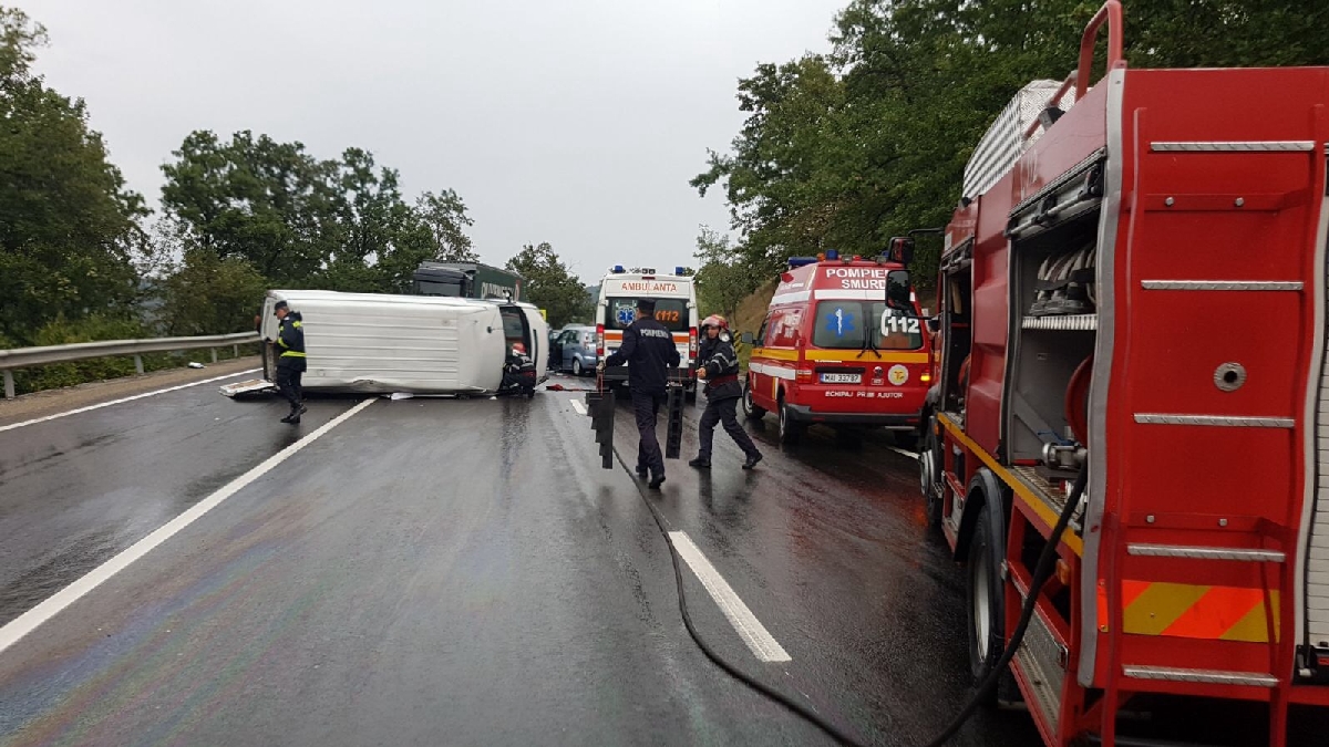 „Pe DN 6, Dealul Balota, la km 326+700 m, conducătorul unei autoutilitare a pătruns pe sensul opus şi a intrat în coliziune frontală cu un autoturism care circula regulamentar. În urma impactului, au fost rănite două persoane, şoferul şi un pasager din autoturismul condus regulamentar, respectiv un pasager din autoutilitară”, declară purtătorul de cuvânt al IPJ Mehedinţi, Lidia Viziru.