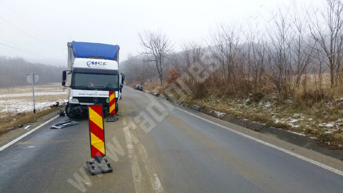 „O femeie în vârstă de 36 de ani, din Caransebeș, a condus un autoturism pe D.N.58, din direcția Reșița spre Caransebeș. La km 9, într-o curbă la dreapta, nu ar fi redus viteza de deplasare, carosabilul fiind umed, a derapat și a pătruns pe contrasens unde a intrat în coliziune cu un autocamion condus regulamentar de un bărbat de 51 de ani, din Cluj. În urma accidentului a rezultat rănirea ușoară a conducătoarei auto, aceasta fiind transportată la spitalul din Caransebeș pentru îngrijiri medicale”.