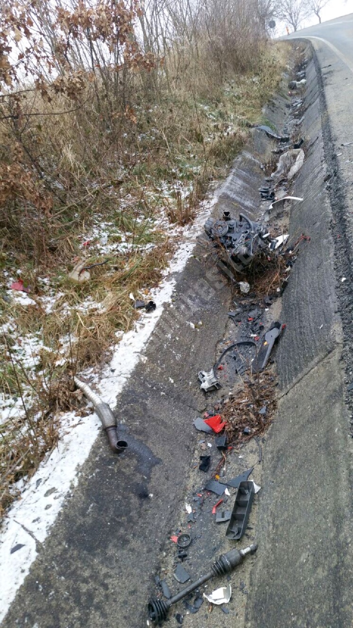 Şoferiţa de 36 de ani, vinovată de producerea accidentului a scăpat cu răni uşoare pentru că a purtat centura de siguranţă. Impactul a fost atât de puternic, încât cutia de viteze a autoturismului Ford a zburat în şanţul de pe marginea drumului.