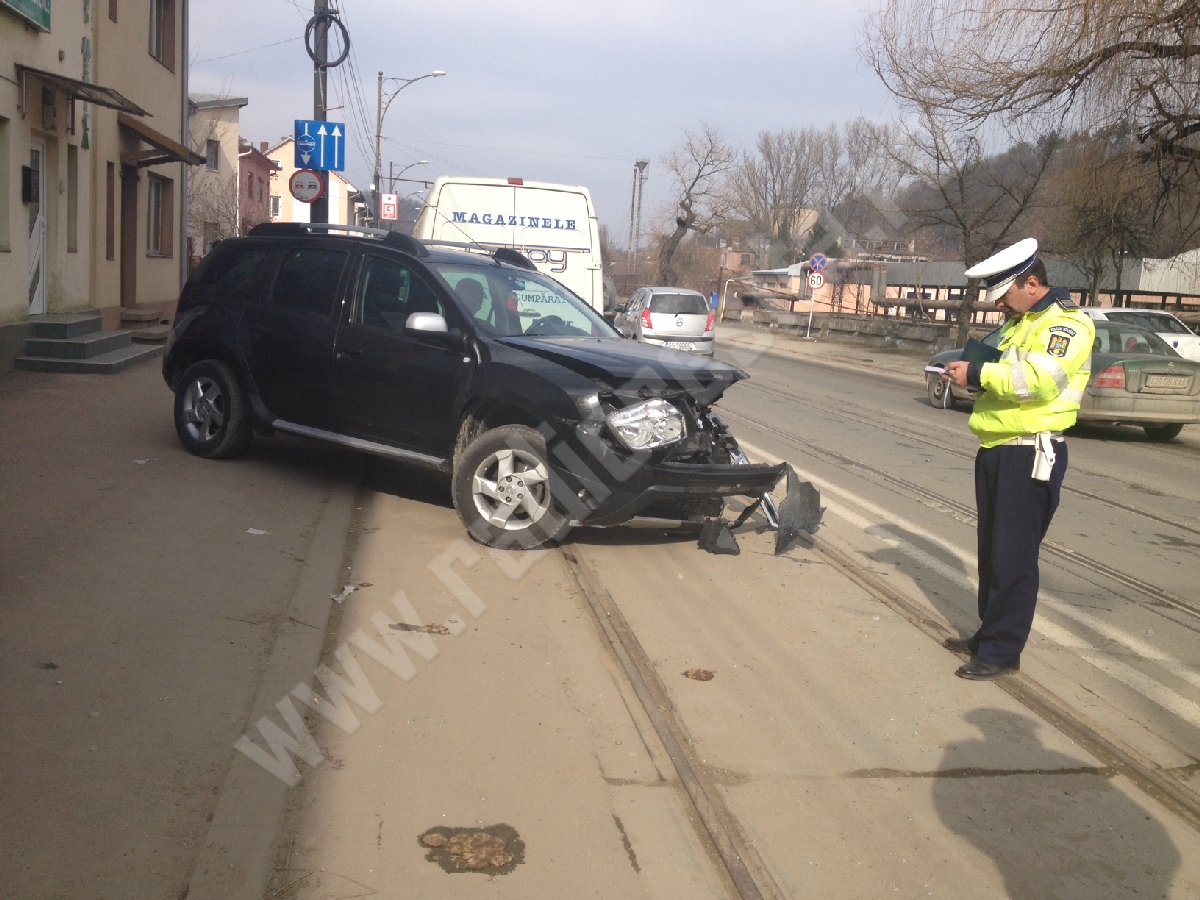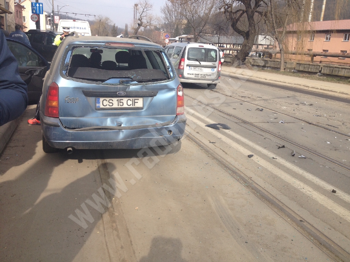 Trei autovehicule au fost implicate la orele amiezii într-un accident de circulaţie în zona Universitate din municipiul Reşiţa. Din primele informaţii se pare că autoturismul de teren Dacia Duster nu a acordat prioritate de trecere la ieşirea de pe podul de la PRESCOM, a acroşat un autoturism marca Opel, care circula regulamentar în direcţia Lunca Bârzavei, pe care l-a proiectat într-un alt treilea autoturism, marca Ford, parcat pe Bd. Revoluţia din Decembrie 1989. Din accident nu au rezultat victime decât însemnate pagube materiale. Şoferul autoturismului Duster, un bărbat de 35 de ani, care a venit de pe strada Fântânilor, a fost sancţionat contravenţional pentru neacordare de prioritate. Tot el va plăti reparaţia celor trei autoturisme avariate. Traficul rutier s-a desfăşurat cu dificultate pe Bulevardul Revoluţiei din Decembrie timp de mai multe minute, coloana de maşini fiind întinsă până la semaforul din centrul oraşului. (Daniela Tudor, Hardy Cvoica)