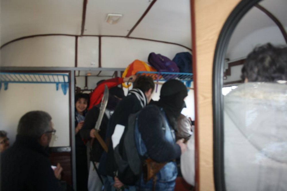Calea ferată Anina-Oraviţa nu moare. Nu o lasă tinerii! Asociaţia „Adrenaline”, cu membrii din Anina şi Timişoara, a organizat la sfârşitul săptămânii trecute o altfel de excursie cu trenul. Călătorii au fost „surprinşi” de o bandă de rău-făcători bine-intenţionaţi care i-au jefuit. Cei în jur de 60 de participanţi la aventură au avut parte de nenumărate surprize, altele decât „bandiţii” înarmati cu carabine, pistoale, macete şi săbii. Atmosfera s-a încălzit şi „cu vin fiert şi slană friptă”, a precizat preşedintele asociaţiei, George Lungu, care a mai ţinut să adauge că un călător aflat întâmplător în tren a dorit să se alăture şi el jafului şi a contribuit la sporirea temei celorlalţi călători cu o drujba! Distracţia a fost însă la cote înalte şi fiecare dintre participanţi a plecat acasă cu amintiri frumoase, multe surprinse pe aparatele de fotografiat şi pe telefoanele „deştepte”.