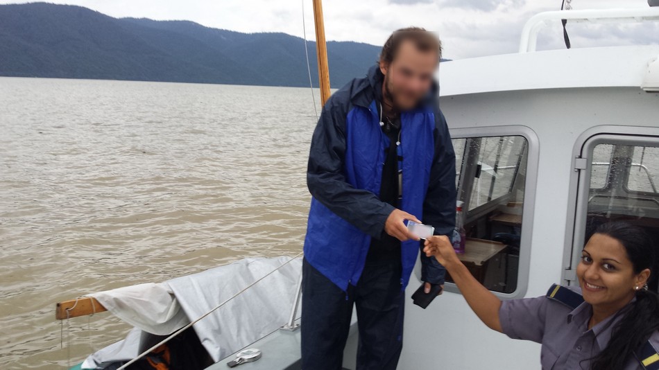 După ce a fost ridicat la bord şi transportat în portul Sviniţa, poliţiştii de frontieră au stabilit că persoana respectivă este J. Nick Marin, în vârstă de 32 de ani, din Landsberg, Germania şi se afla în croazieră pe fluviul Dunărea având ca destinaţie Constanţa. Deoarece condiţiile hidrometeorologice nu permiteau continuarea călătoriei pe Dunăre în condiţii de siguranţă, poliţiştii de frontieră i-au asigurat cetăţeanului german condiţiile minime de cazare şi hrană.