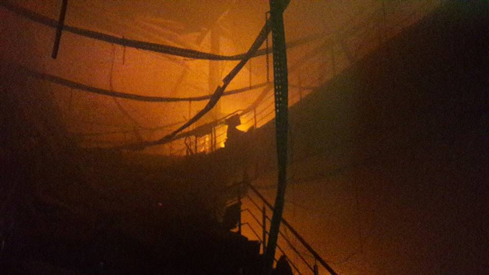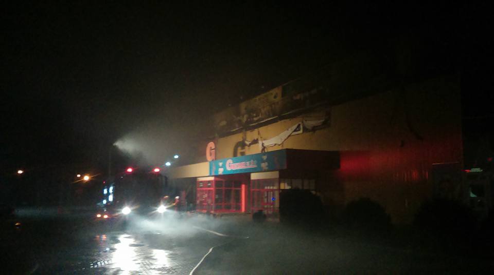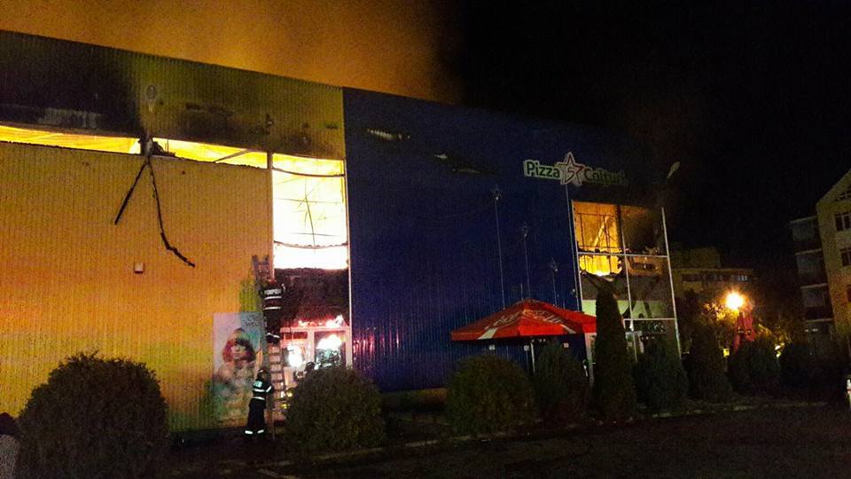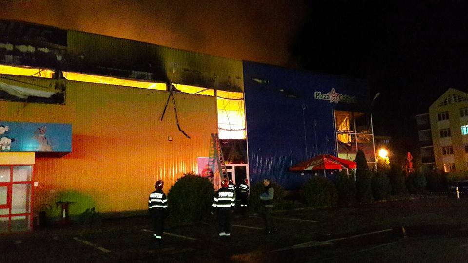 [FOTO] Un centru comercial din Arad a fost mistuit de flăcări. Un pompier a fost rănit în timpul misiunii