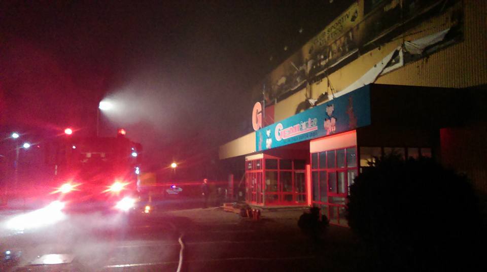 La primul etaj se aflau un loc de joacă, o sală de sport şi un magazin de mobilă, care au fost mistuite de flăcări, iar la parter sunt un hipermarkeţ o pizzerie şi un alt magazin de mobilă. Exista pericolul ca incendiul să se extindă la un hotel aflat la circa 3 metri şi la o benzinărie.