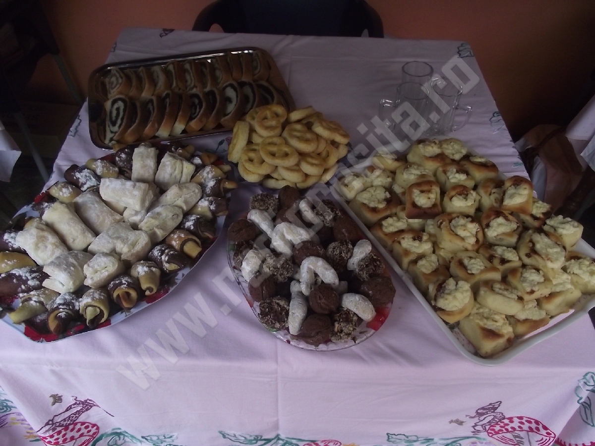 De la colaci la cornuleţe, până la gogoşi şi toate tipurile de prăjituri – cu mac, nucă, brânză sau mere – totul a dus cu gândul mai degrabă la un festival al… diabetului! Nimeni, însă, nu s-a dat la o parte de la a gusta tot ce era mai dulce, aşa că în vreo jumătate de oră pe mese nu se mai găseau nici măcar firimiturile! Şi cum dulcele nu merge, totuşi, pe stomacul gol, nu a lipsit cazanul cu gulaş de Şumiţa, care să deschidă pofta de… dulce!
