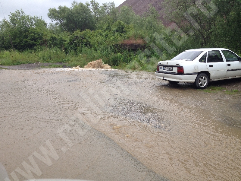 Apa a început să se reverse şi pe drumul de centură al Reşiţei, aşa că circulaţia se desfăşoară cu dificultate.
