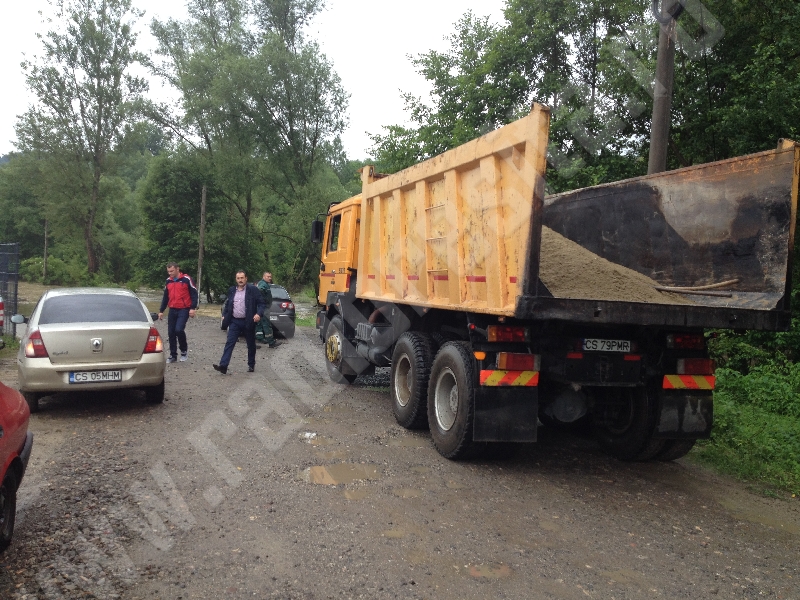Cu puţine minute înainte de ora prânzului au venit echipaje de intervenţie de la Serviciul voluntar pentru Situaţii de Urgenţă Reşiţa, însoţiţi de utilaje ale Primăriei şi ale Sistemului de Gospodărire a Apelor Reşiţa. Cu toţii acţionează pentru a limita pagubele.