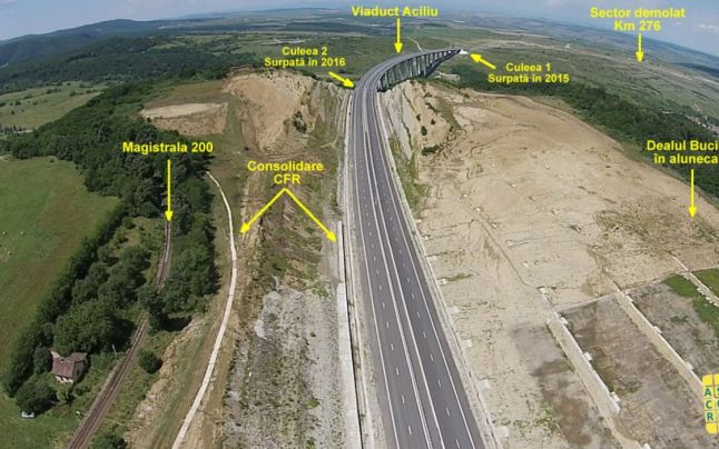 ”CNANDR nu a schimbat nimic din soluţiile tehnice şi mai mult s-a concentrat exclusiv pe refacerea terasamentului demolat de la KM 276 (kilometrul tehnic 60 al tronsonului), în timp ce problemele reale şi mult mai grave de la Viaductul Aciliu şi din debleul din dealul Bucium (Aciliu) au rămas nerezolvate. În fapt problemele s-au agravat şi merg în direcţia unui colaps catastrofal, aşa cum noi avertizam încă de acum doi ani. Cu alte cuvinte CNADNR continuă cârpeala de ochii lumi, chiar şi acum când suntem mult după ceasul al doisprezecelea, căci ochii lumii sunt aţintiţi asupra KM 276. Şi se pare că pentru CNADNR imaginea este tot ceea ce contează”, mai afirmă Mihai Crăciun. (Sursa fotografiilor: construim-romania.ro)