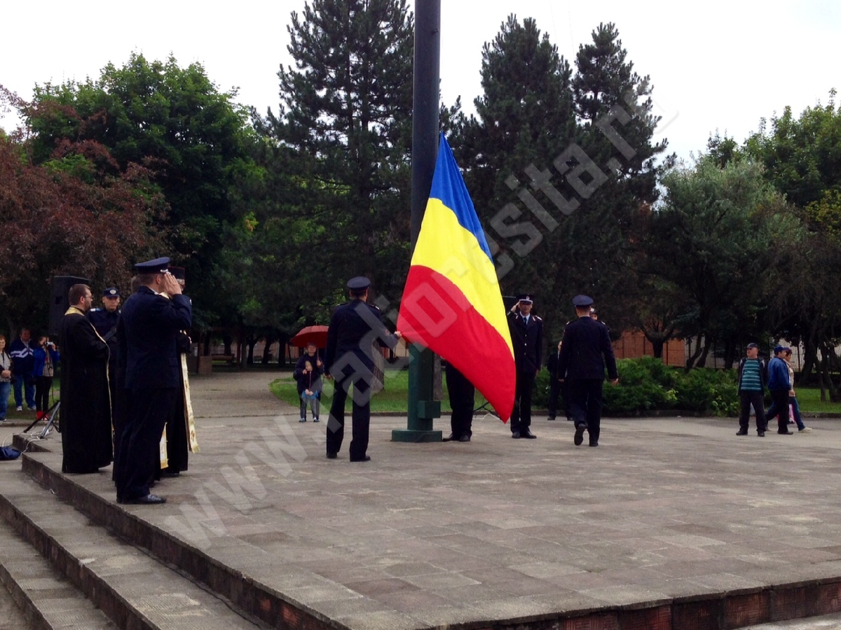 La ceremonie au fost prezenţi reprezentanţi ai structurilor din MAI, MAPN şi ai Poliţiei locale Reşiţa, dar şi câţiva reşiţeni care nu s-au speriat de ploaie: