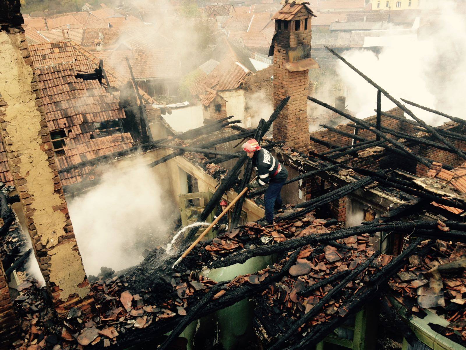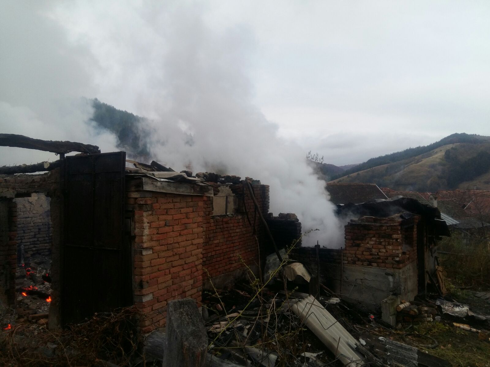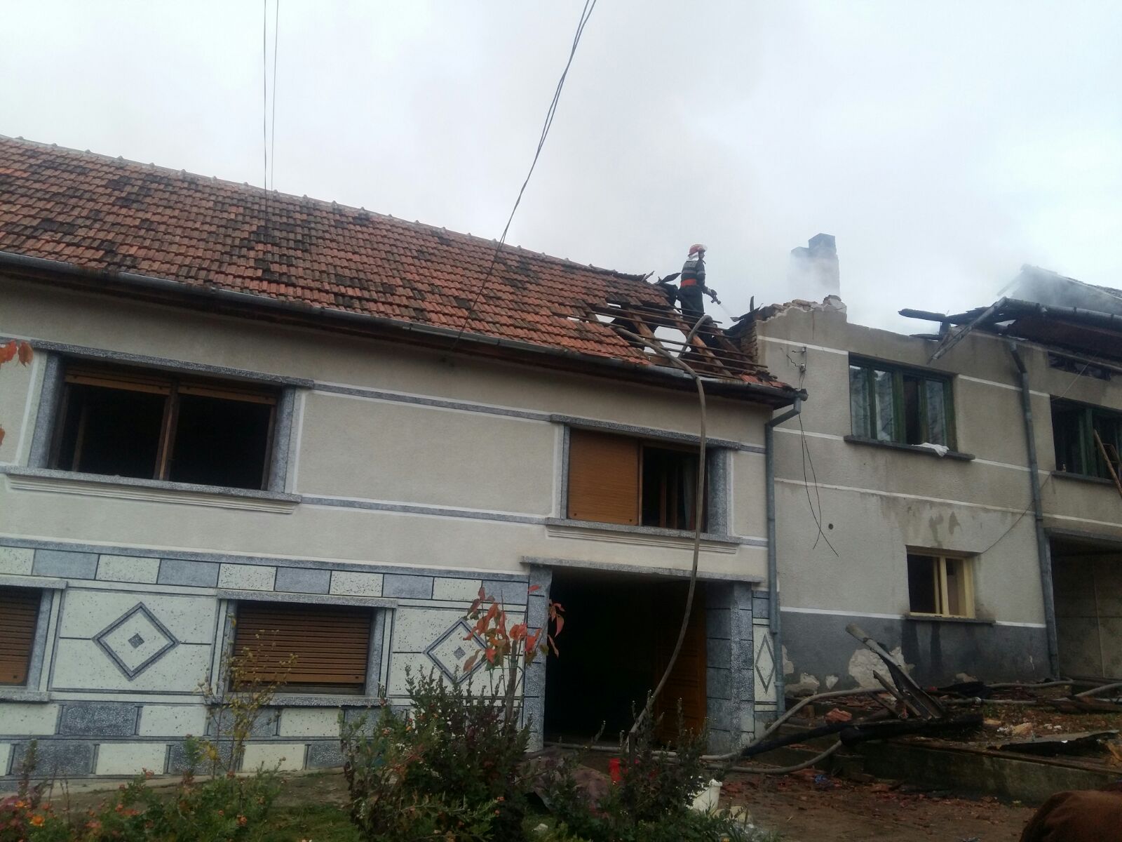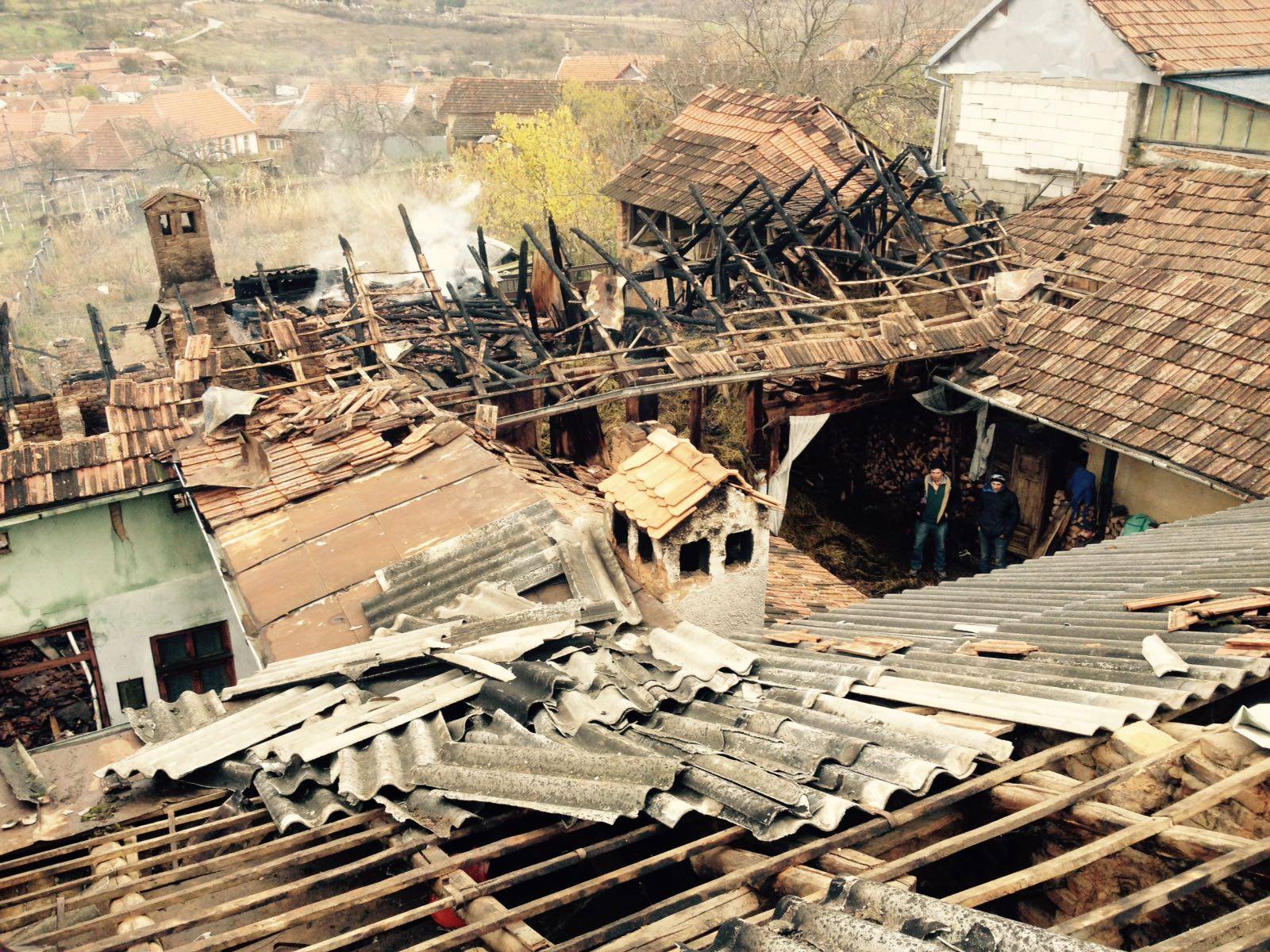 [FOTO- VIDEO] Flăcările au făcut scrum casa unei familii din Caraş-Severin. Două persoane au fost transportate la spital