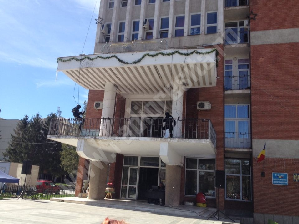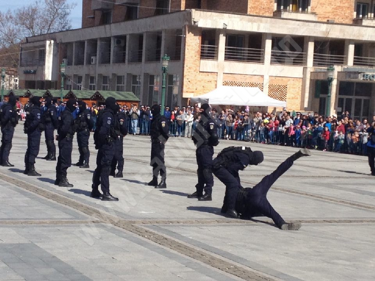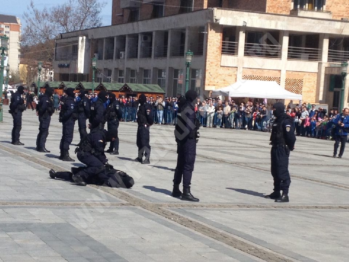 După ceremonia festivă, activităţile s-au desfăşurat afară, în Piaţa 1 decembrie, chiar pe platoul din faţa Prefecturii. Acolo, încă de dimineaţă au fost amenajate standuri de prezentare a tehnicii din dotare şi a fost prezentată oferta educaţională a jandarmeriei. Totodată, au fost organizate demonstraţii de dresaj canin, autoapărare, anihilarea infractorilor şi cel mai gustat a fost momentul de coborâre în rapel de pe clădirea Palatului Administrativ. Jandarmii au reuşit să reţină autorul unei „răpiri” sub amininţarea armei.