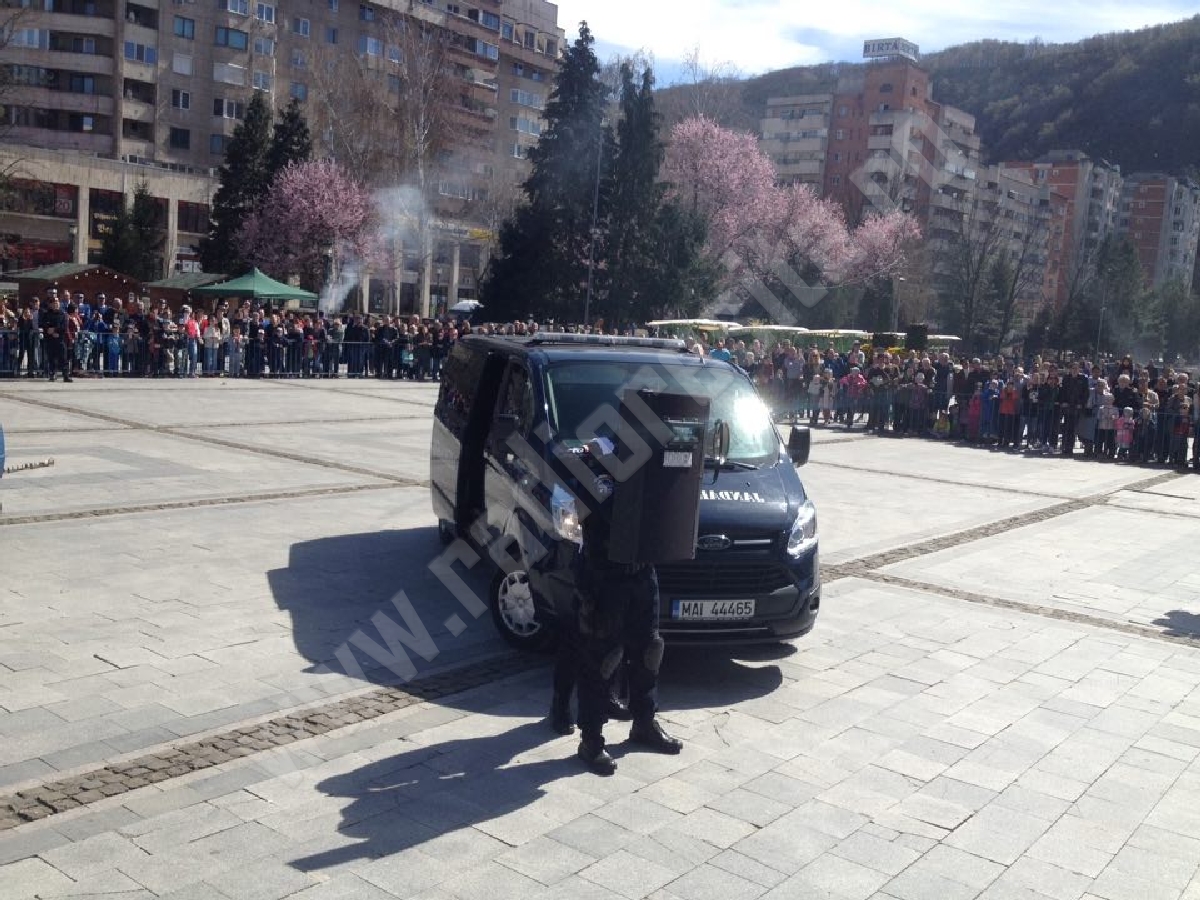 Exerciţiile demonstrative au fost executate inclusiv de mascaţii de la Gruparea Mobilă de Jandarmi din Timişoara.