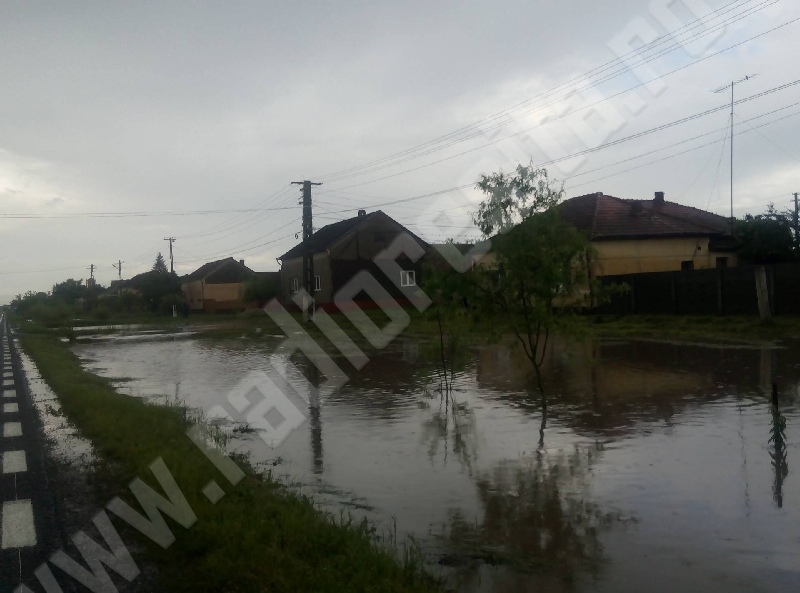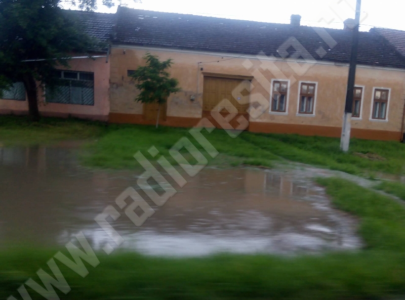 [FOTO-VIDEO] Se circulă cu dificultate pe drumul Reşiţa – Timişoara, în comuna Măureni. Apa a ieşit pe carosabil