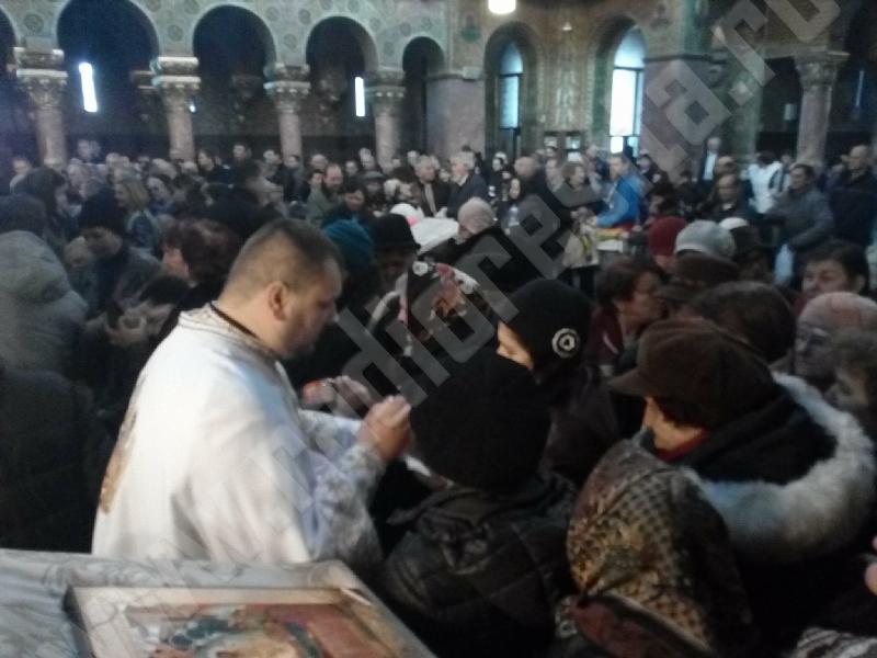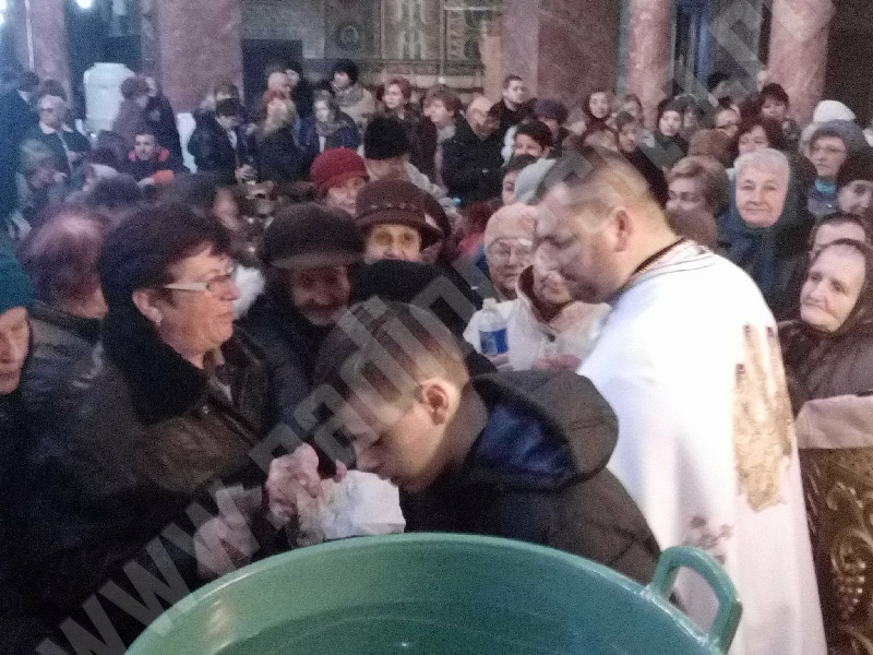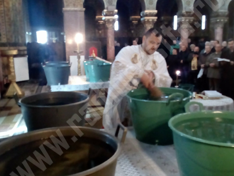 Sfânta Slujbă a fost oficiată de părintele Cristian Rădulescu – parohul lăcaşului de cult alături de preotul co-slujitor din biserică, Boris Tasici. Creştinii au venit să ia Aghiasmă Mare pentru a stropi gospodăriile şi încăperile, pentru bunăstare şi pace în casă în noul an care tocmai a început: