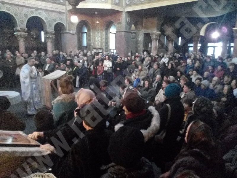 Zeci de reşiţeni s-au înghesuit la orele amiezii, la Biserica ortodoxă română cu hramul „Adormirea Maicii Domnului” din cartierul Muncitoresc din municipiu, pentru a lua apă sfinţită.