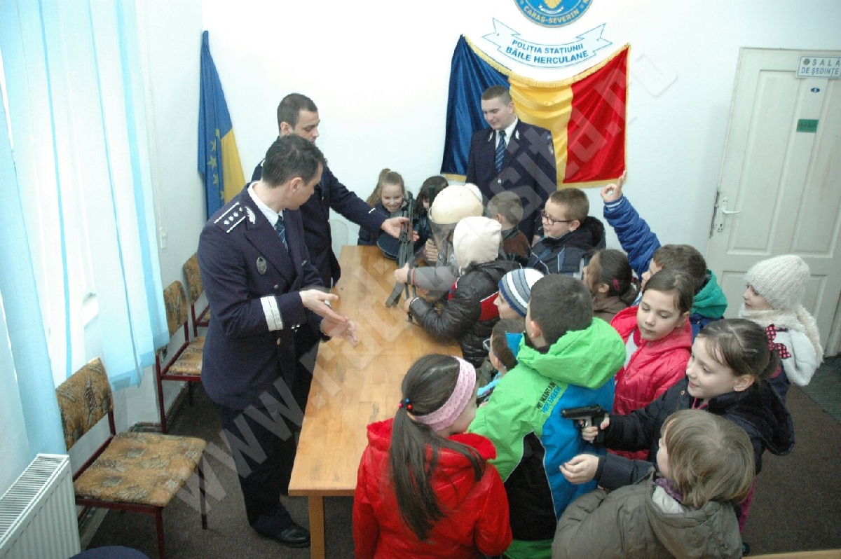 „O mare bucurie pentru noi a fost această revenire a copiilor în sediul nostru, unde au putut remarca birourile noastre, activitatea noastră, armamentul şi tehnica amprentării pe le-am prezentat-o! A doua mare bucurie pe care am văzut-o pe faţa copiilor este faptul că le-am putut oferi şi în acest an diploma de POLIŢIST PENTRU O ZI şi, bineînţeles, diplome pentru membrii patrulei rutiere, cărora încă o dată vreau să le mulţumesc pentru activitatea lor în această perioadă! Totodată mulţumesc cadrelor didactice care s-au ocupat de această activitate şi sper ca şi anul viitor să o organizăm cel puţin la acelaşi nivel”, a declarat subcomisarul Radu Ştefan – comandantul Poliţiei oraşului Băile Heculane.