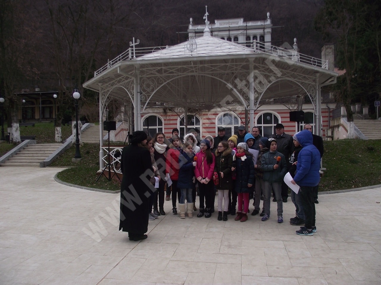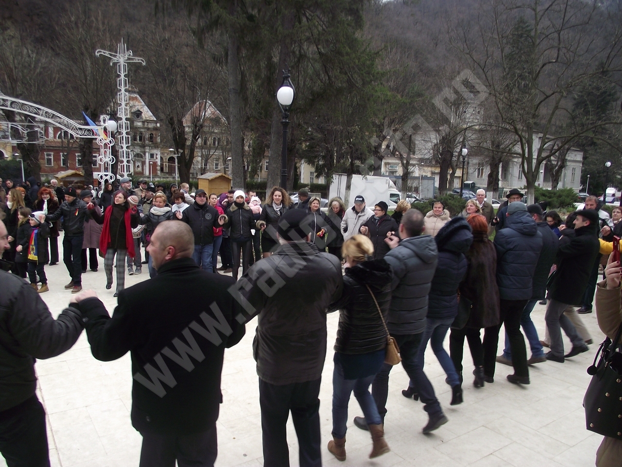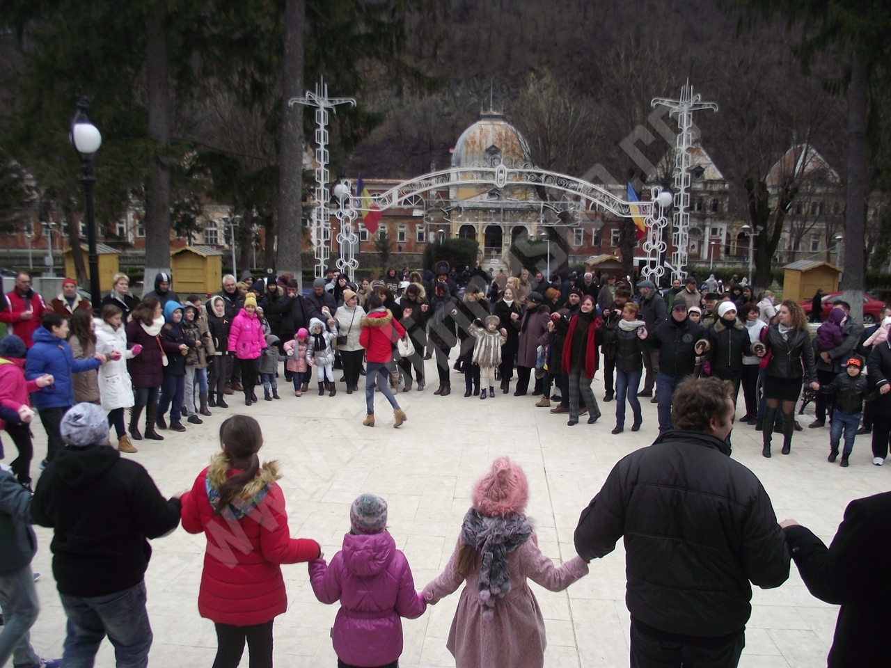 Atmosfera de sărbătoare a continuat cu concertul de colinde susţinut de un grup de elevi ai Liceului HERCULEŞ manifestarea încheindu-se cu HORA UNIRII, în care s-au prins participanţii la acest evenimenţ la care au fost preyente şi oficialităţile locale, reprezentate de conducerea administraţiei publice a oraşului, precum şi cea mai mare parte a consilierilor locali.