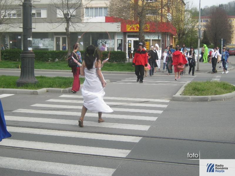 Deghizaţi în personaje de poveste şi costume de epocă, peste 40 de tineri voluntari au animat, în această după-amiază, timp de câteva minute străzile din cartierul Lunca Bârzavei, făcând farse atât şoferilor cât şi pietonilor.