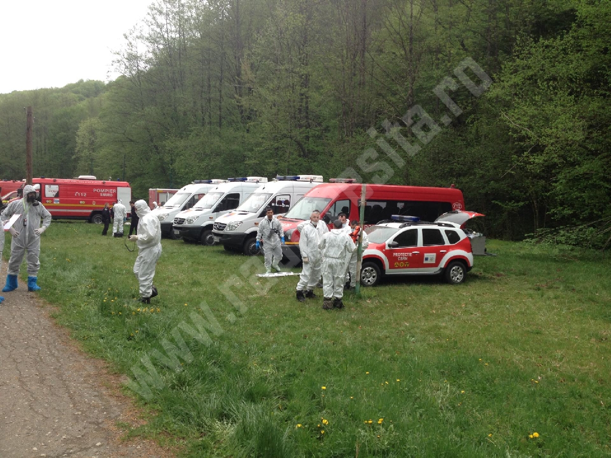 Mobilizare într-o zonă împădurită din Banat pentru salvarea unor persoane contaminate cu substanțe periculoase.