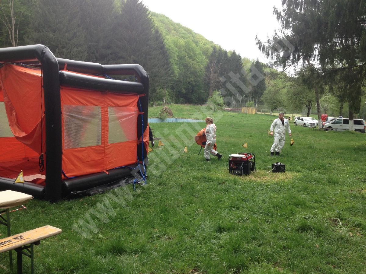 Tabăra de la Râul Alb este declarată, în această săptămână, zonă contaminată. Forţe ale MAI venite din mai multe judeţe au fost mobilizate în zonă şi încearcă să salveze persoanele afectate. Din fericire este doar un exerciţiu de cooperare între pompierii specializaţi în domeniul chimic, biologic, radiologic şi nuclear.