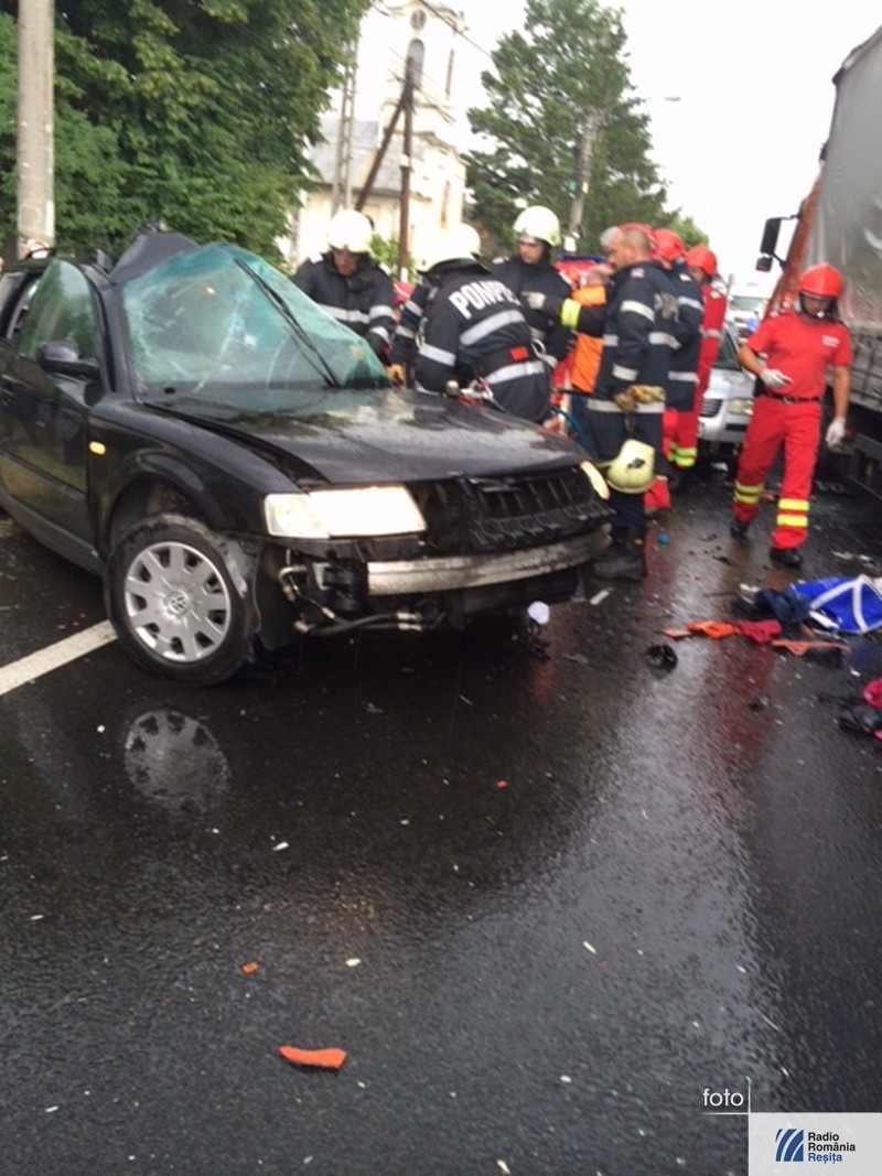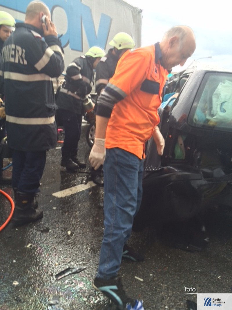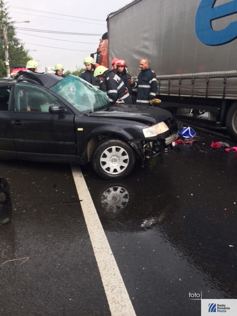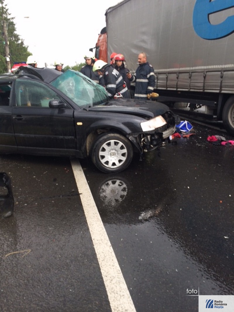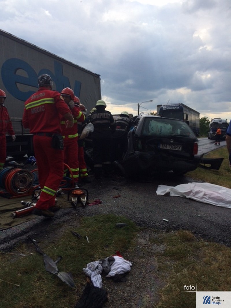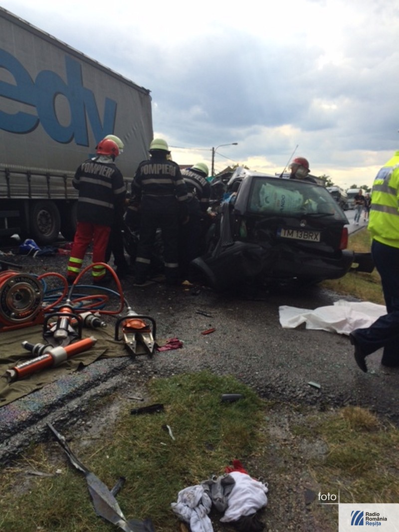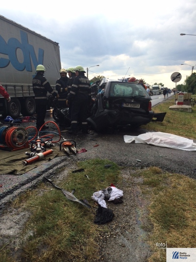 Accident grav, cu patru morţi, în mijlocul localităţii Topolovăţu Mare din judeţul Timiş. În autoturismul ce a intrat în coliziune cu un TIR se aflau doi copii, mama lor şi bunica. Conducătoarea autoturismului, în vârstă de 32 de ani din Timişoara, a efectuat manevra de depăşire a două autovehicule în timp ce din faţă venea un altul. Când a vrut să revină pe sensul ei de mers a acroşat roata TIR-ului. Cauzele producerii accidentului sunt, pe lângă neatenţia şoferiţei, carosabilul umed şi neadaptarea vitezei la condiţiile meteorutiere. Pentru eliberarea victimelor a fost nevoie de intervenţia pompierilor de la descarcerare. La faţa locului a sosit şi un elicopter SMURD.