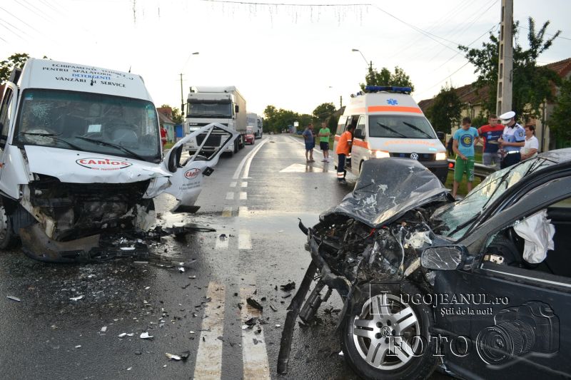 Grav accident produs aseară pe raza localităţii timişene Chizătău. Din cauza carosabilului umed, soferul unui autoturism cu număr de Gorj a intrat pe contrasens şi s-a izbit violent de o autoutilitară ce transporta miere. „La kilometrul 514 pe DN6, șoferul unui autoturism a pierdut controlul mașinii într-o curbă și a pe contrasens unde s-a izbit de un microbuz. În urma accidentului au rezultat cinci persoane care au fost transportate la spital pentru acordarea de îngrijiri medicale. Două dintre victime provin din autoturism și celelalte trei din microbuz. Polițiștii efectuează cercetări pentru a vedea cu exactitate cum s-a produs accidentul”, a declarat pentru pressalert.ro Mirela Drăghicioiu, de la Biroul de Presă al IPJ Timiș. În urma incidentului, traficul pe DN6 a fost blocat timp de aproape o oră.
