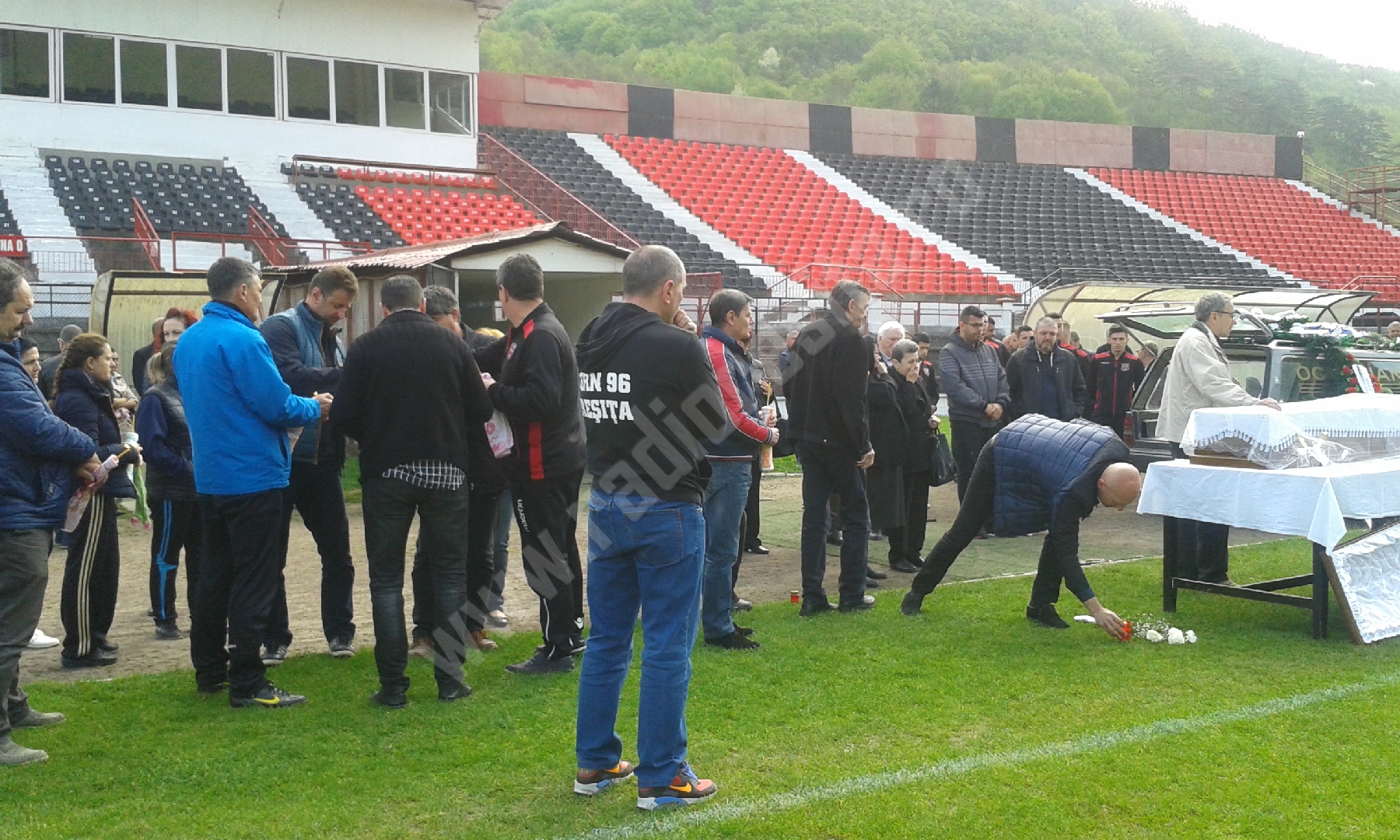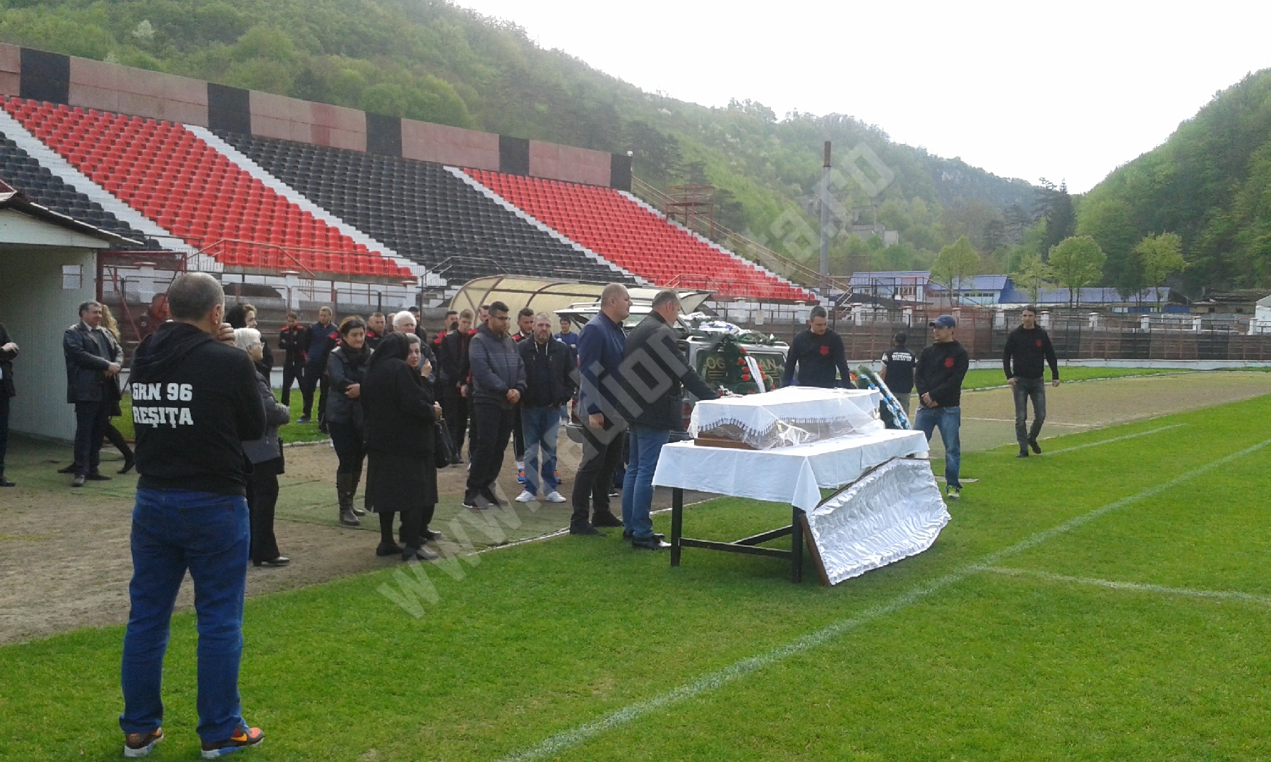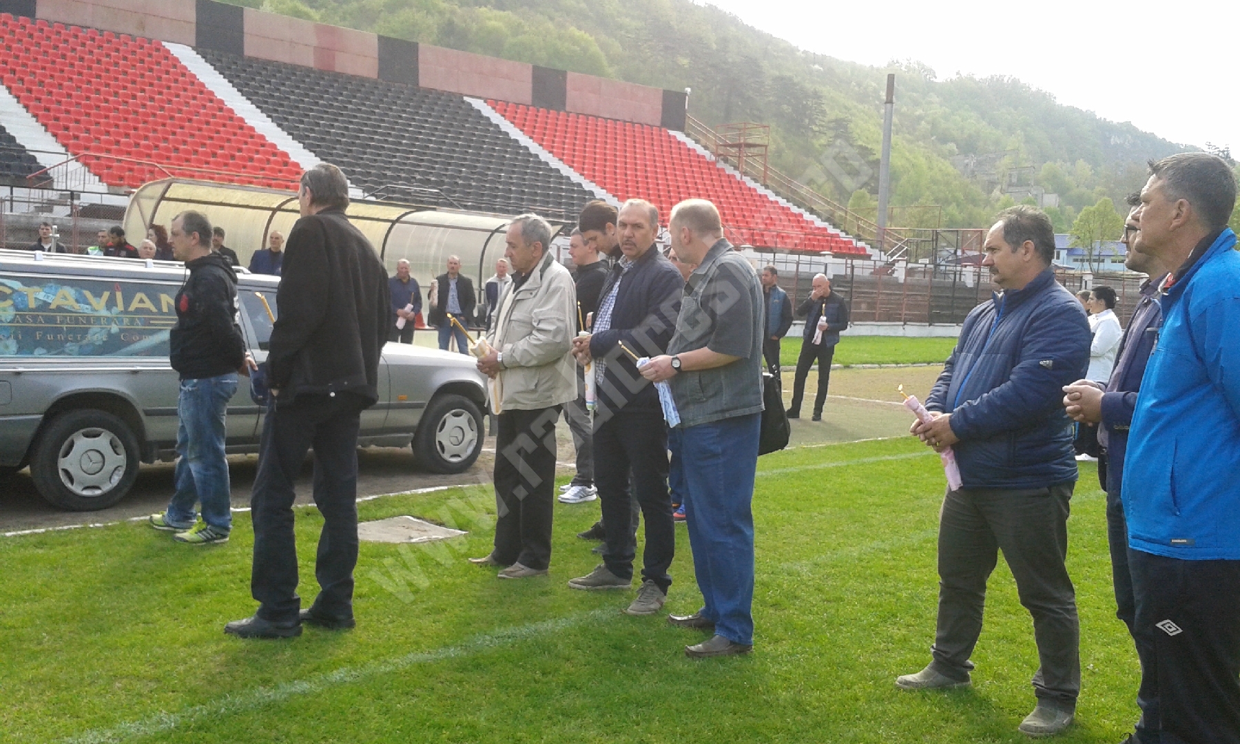 Plângând și îngenunchiați i-au aprins o lumânare și au spus o rugăciune, jucătorii actuali și foști. Din garda veche face parte și antrenorul Sandu Rocco. Și-a amintit cu nostalgie că Gigi Rouă a fost primul care i-a dat binețe, atunci când a ajuns de la Bocșa pentru prima dată la formația din Valea Domanului: