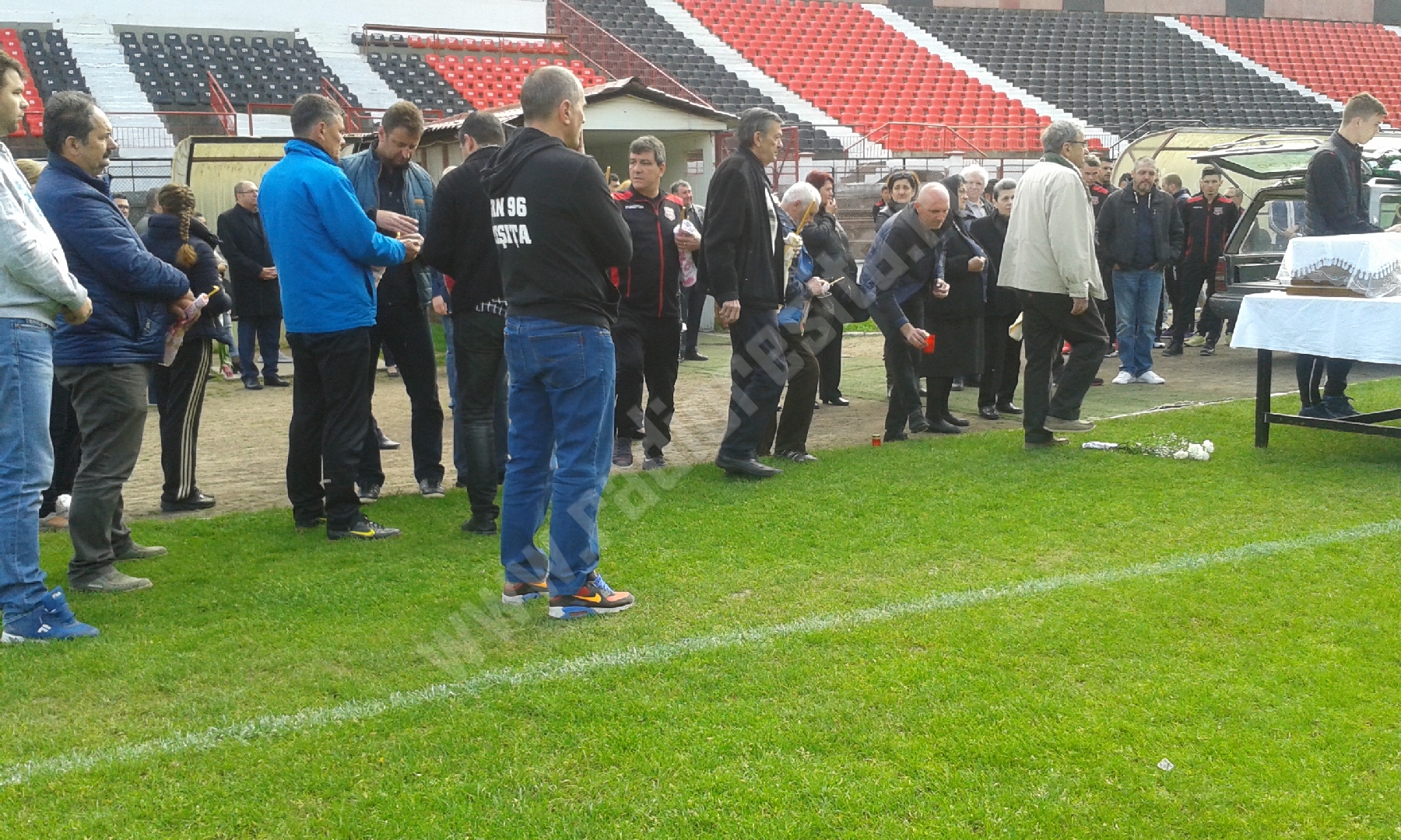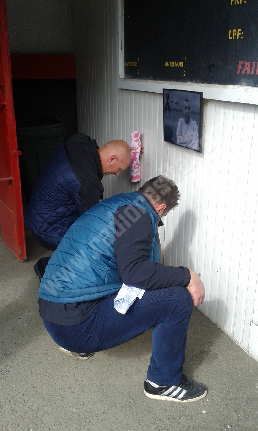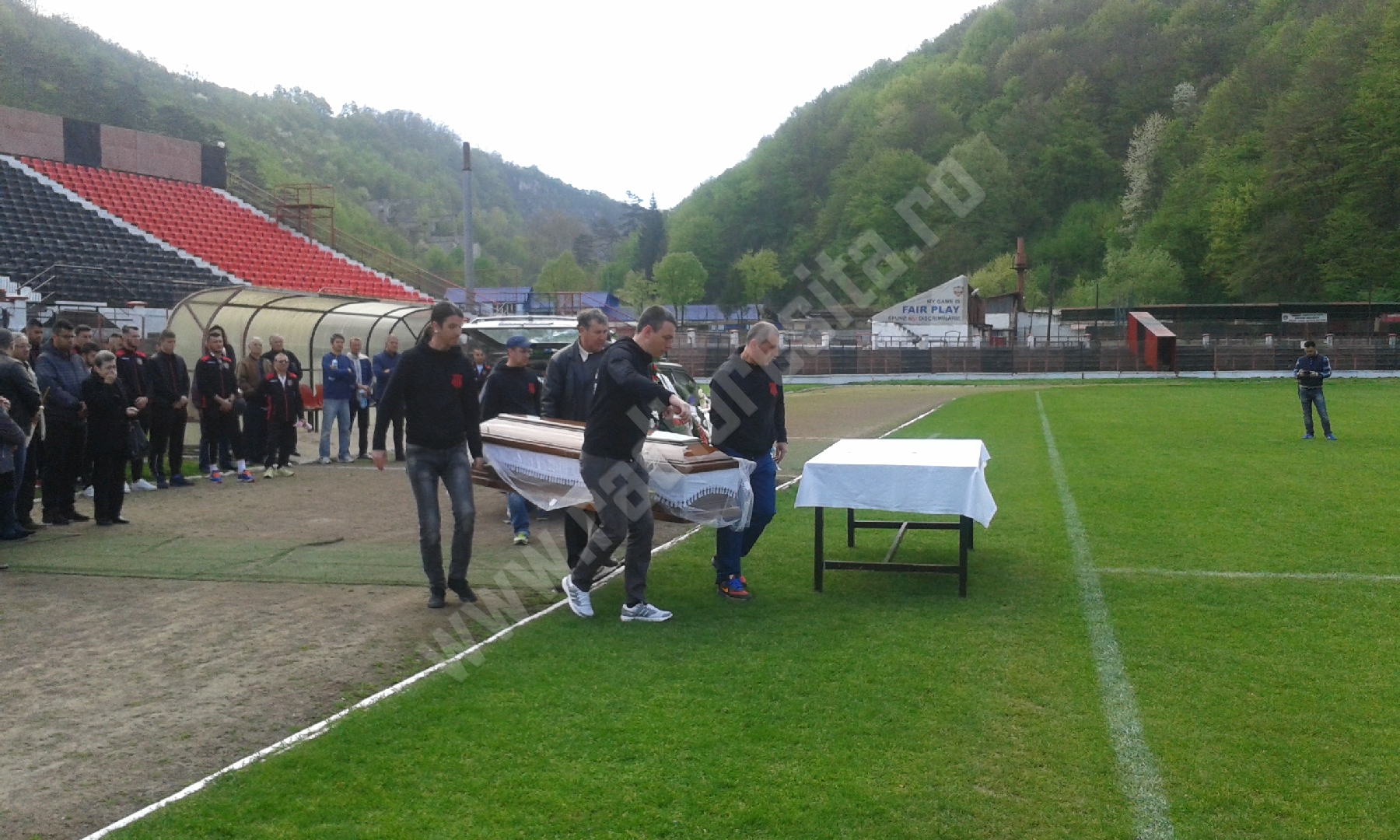 Plângând și îngenunchiați i-au aprins o lumânare și au spus o rugăciune, jucătorii actuali și foști. Din garda veche face parte și antrenorul Sandu Rocco. Și-a amintit cu nostalgie că Gigi Rouă a fost primul care i-a dat binețe, atunci când a ajuns de la Bocșa pentru prima dată la formația din Valea Domanului: