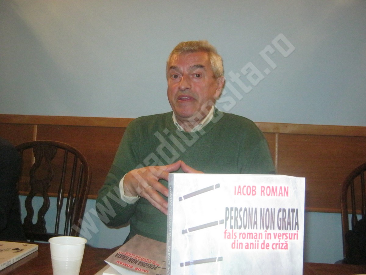 Recent a apărut la Editura „Palimpsest” din Bucureşti noul volum de versuri al poetului Iacob Roman, un ton consistent cât un roman, cu un titlu şocant, bizar, straniu… ”Persona non grata – sau fals roman în versuri despre anii de criză”. O criză a poetului în anii de criză a societăţii româneşti, a poeziei, a vieţii. Fără să-şi dorească o lansare festivă, anunţată în prealabil, autorul a preferat să-şi prezinte zilele trecute cartea în cadrul restrâns al cenaclului „Semenicul”, unde au fost invitaţi tehnocraţii, scriitorii şi poeţii din vechea gardă, cuvântul veteranilor atârnând greu în balanţa evaluării, dar şi cei din noua gardă, care echilibrează critica de întâmpinare în maniera Sălii Albastre. A fost o avanpremieră a unei posibile lansări oficiale, mult mai importantă pentru autor, aşa cum a declarat:
