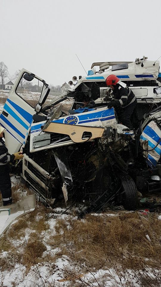 [FOTO] Impact violent pe o şosea din vestul ţării. Două maşini de mare tonaj s-au lovit frontal