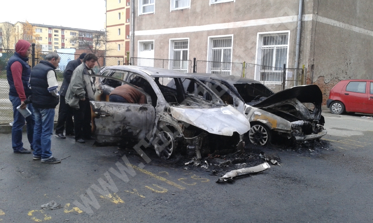 Pompierii detașamentului Reșița au intervenit noaptea trecută la un incendiu izbucnit într-o parcare de pe bulevardul Republicii, nr 4. Alarma a fost dată cu câteva minute înainte de miezul nopţii, când a fost anunţat că două autoturisme sunt cuprinse de flăcări şi există riscul ca incendiul să se extindă şi celelalte maşini din parcare. Două autoturisme au ars în întregime, un Golf 4 şi un Renault, iar alte două maşini au fost afectate parţial din cauza temperaturii degajate. Poliţia şi pompierii urmează să stabilească cauza incendiului şi nu este exclus să fie vorba despre o acţiune intenţionată.