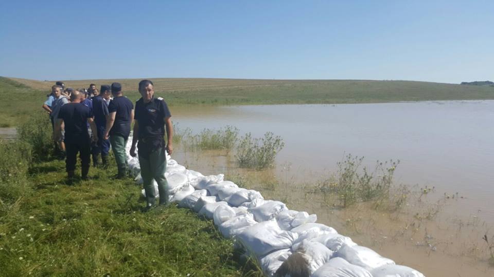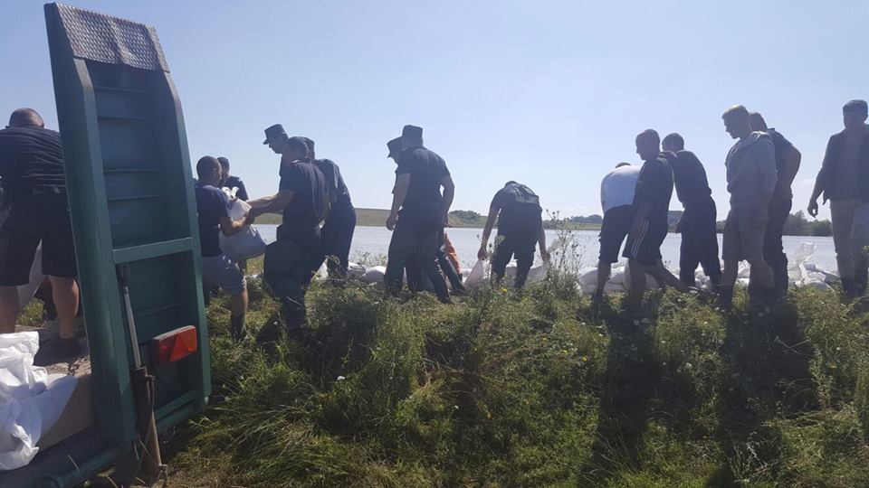 [FOTO] Inundaţii în judeţul Timiş: pompierii înalţă diguri în comuna Gătaia