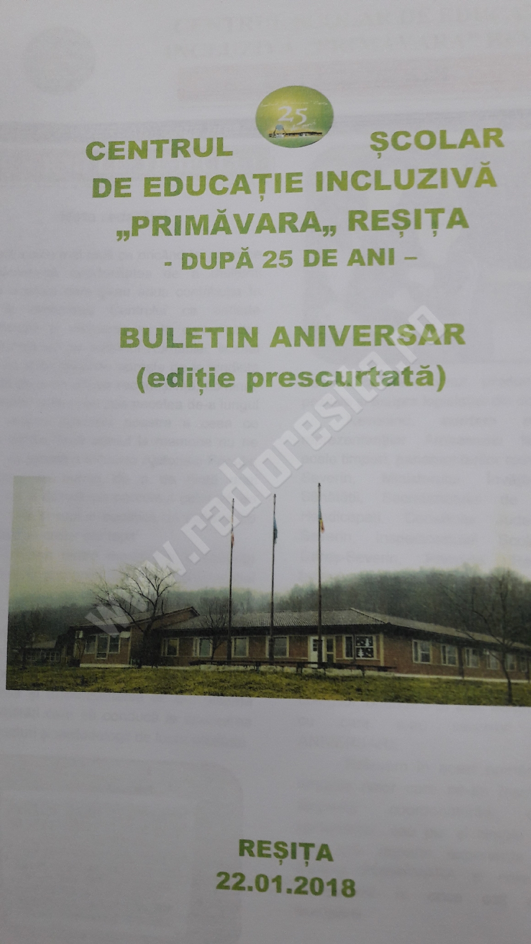 Cu acest prilej este realizat și un buletin aniversar Centrul Școlar de Educație Incluzivă Primăvara din Reșița –după 25 de ani-, care cuprinde o serie de informații despre activitatea instituției și articole realizate de diferite persoane, care au fost și sunt implicate în tot ceea ce înseamnă ”Centrul Primăvara” pentru comunitate.