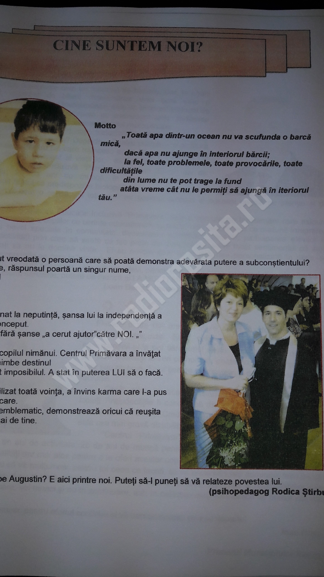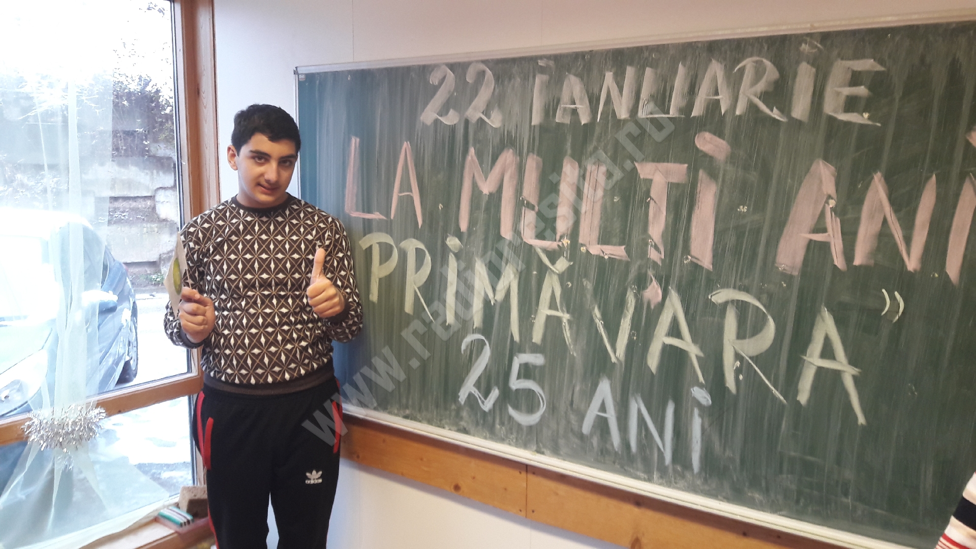 „Aici la Centru în fiecare dimineață facem lecții. Azi e o zi specială, ziua Centrului și am făcut steagul Centrului Primăvara Reșița -25 de ani, apoi tăiem tortul. Sunt copilul Centrului Primăverii”.